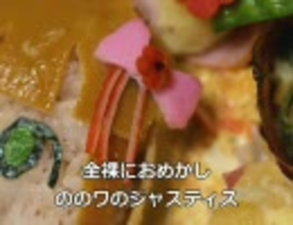 同居人がキャラ弁ならぬキャラおせちを作るというので、録って編集してみた。<br />結果から言うとそれなりによくできた。が。<br /><br />制作日数が四日かかったので動画時間も長め。年末年始のヒマつぶしにどうぞ。<br />それなりにできた前回 <a href="https://www.nicovideo.jp/watch/sm5538406" class="watch">sm5538406</a> ちょっとナニだった前々回 <a href="https://www.nicovideo.jp/watch/sm5268317" class="watch">sm5268317</a>