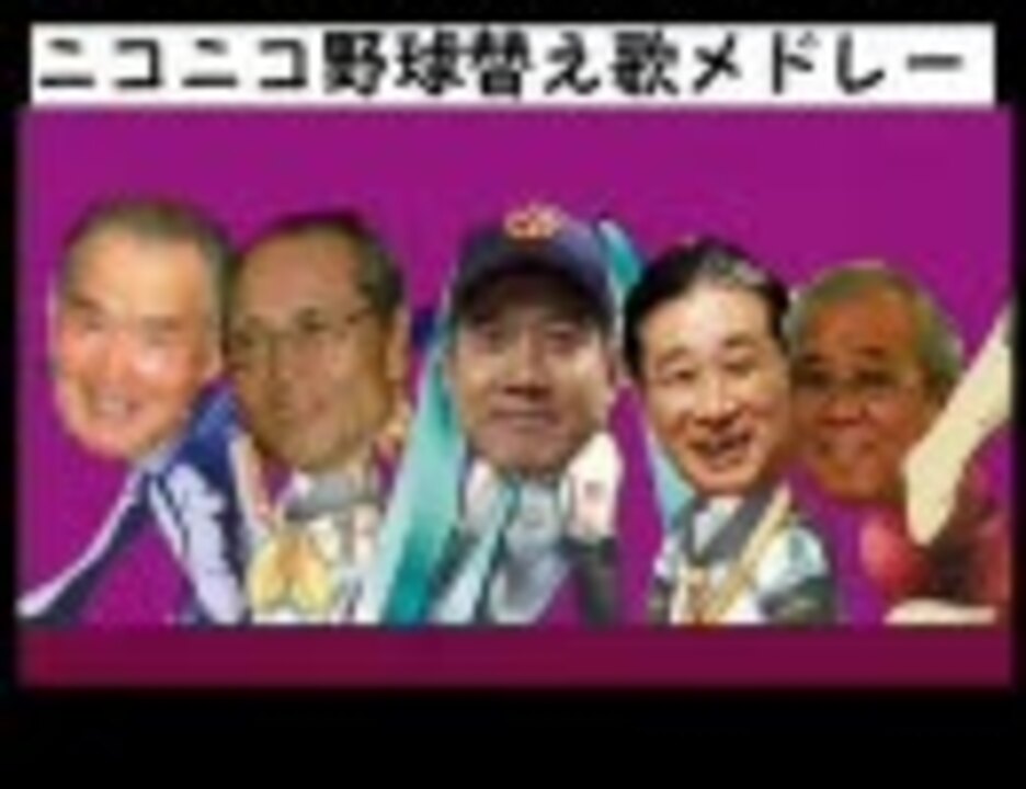 inokix様の『ニコニコ替え唄メドレーその2』で野球替え歌です。<br />2009年一発目も相変わらずの悪ふざけですいません。<br />続編『ニコニコ野球替え唄メドレー 第3戦』→<a href="https://www.nicovideo.jp/watch/sm5977659" class="watch">sm5977659</a><br /><br />超偉大なるネタ元、本家様→<a href="https://www.nicovideo.jp/watch/sm2981693" class="watch">sm2981693</a><br />音源はこちらからお借りしました→<a href="https://www.nicovideo.jp/watch/sm3035682" class="watch">sm3035682</a><br />参考にした『元の曲で再現』様→<a href="https://www.nicovideo.jp/watch/sm4464903" class="watch">sm4464903</a><br />いつもの方が歌ってくれました!→<a href="https://www.nicovideo.jp/watch/sm6305697" class="watch">sm6305697</a><br /><br />この動画を見る前に上記の動画を見ていただきますと<br />ちょっとわかりやすくなると思います。<br /><br />その他、投稿した動画→<a href="https://www.nicovideo.jp/mylist/1536028" target="_blank" rel="noopener">mylist/1536028</a><br /><br />ご本家様リンクありがとうございます!5フラン以上持っていきますw
