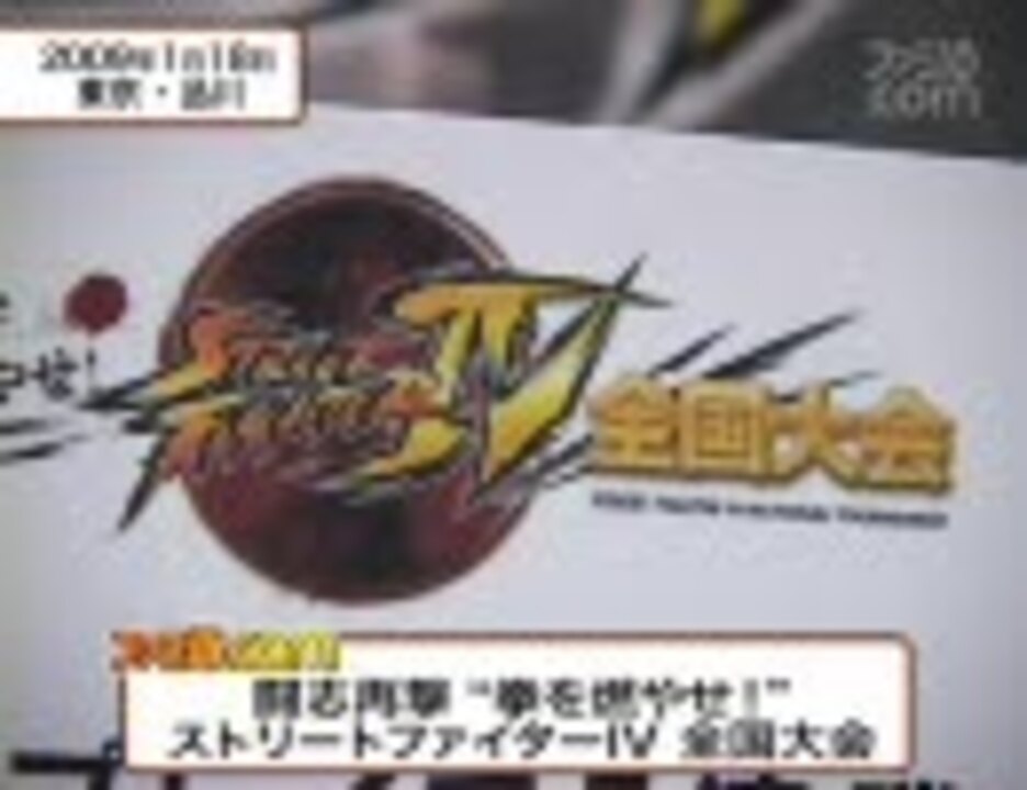 [09/01/18] ファミ通.COMより<br />あーるえふ(サガット)VS伊予(ダルシム)<br />(エコノミーだと画質が悪いようです)。<br />【追記】その他ベスト8は、金デヴ(3位)、りき(4位)、ベガカレー、青汁ガイル、だしお、ときどきヌキンクス(ヌキ)<br /><br />決勝戦>><a href="https://www.nicovideo.jp/watch/sm5889601" class="watch">sm5889601</a> ←いまここ<br />準決勝①>><a href="https://www.nicovideo.jp/watch/sm5925234" class="watch">sm5925234</a> 準決勝②>><a href="https://www.nicovideo.jp/watch/sm5924760" class="watch">sm5924760</a><br />3位決定戦>><a href="https://www.nicovideo.jp/watch/sm6034128" class="watch">sm6034128</a><br />準々決勝①>><a href="https://www.nicovideo.jp/watch/sm6061952" class="watch">sm6061952</a> 準々決勝②>><a href="https://www.nicovideo.jp/watch/sm6062164" class="watch">sm6062164</a><br />準々決勝③>><a href="https://www.nicovideo.jp/watch/sm6108692" class="watch">sm6108692</a> 準々決勝④>><a href="https://www.nicovideo.jp/watch/sm6108931" class="watch">sm6108931</a><br />ウメハラvsベガカレー>><a href="https://www.nicovideo.jp/watch/sm6081398" class="watch">sm6081398</a><br />全国大会レポート>><a href="https://www.nicovideo.jp/watch/sm6070523" class="watch">sm6070523</a><br />その他ストⅣ動画<a href="https://www.nicovideo.jp/mylist/10881176" target="_blank" rel="noopener">mylist/10881176</a><br />【追記】全128試合収録(優勝者インタビューなど)のDVDが4/30にでるそうです<br />闘志再撃“拳を燃やせ”ストリートファイターIV全国大会 DVD<br /><a href="http://www.enet-japan.com/shop/g/g4541993015061/" target="_blank" rel="noopener nofollow">http://www.enet-japan.com/shop/g/g4541993015061/</a>