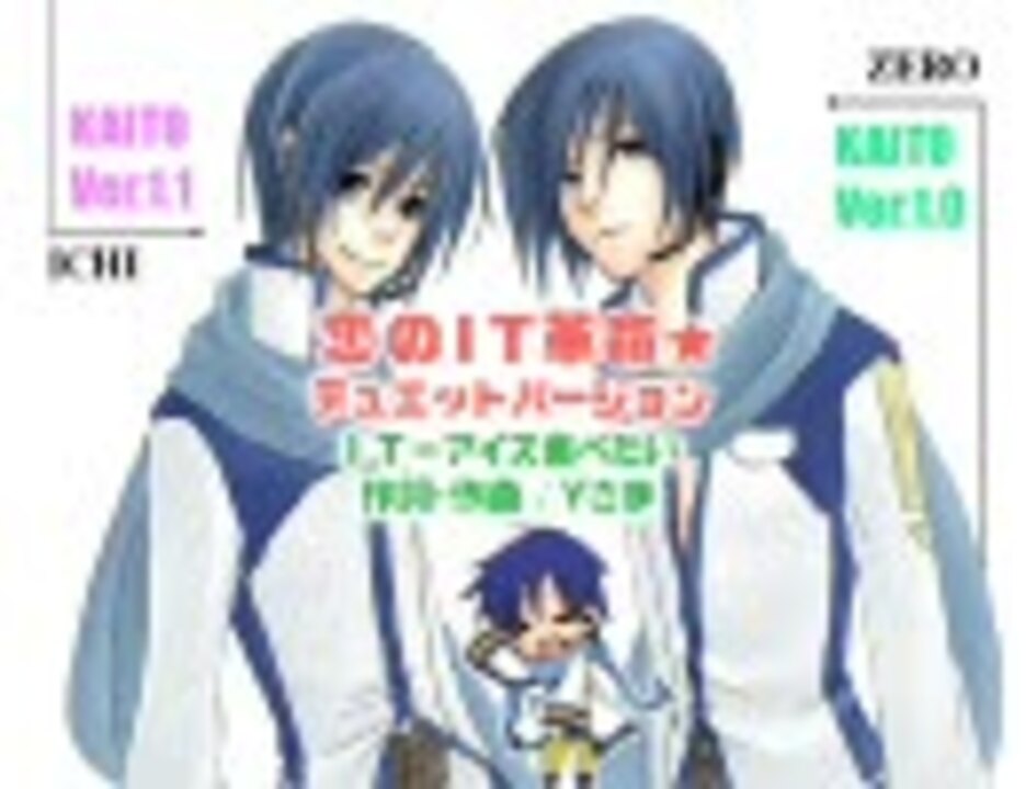 ユズです。この歌もバージョン違いの双子KAITOにデュエットしてもらいました。<br />ゼロで調教した同データをイチでも出力して重ねました。ハモリなしです。詳しくはVer1.0と1.1の検証動画にて→<a href="https://www.nicovideo.jp/watch/sm6096853" class="watch">sm6096853</a><br />作詞・作曲Y様→原曲<a href="https://www.nicovideo.jp/watch/sm4099653" class="watch">sm4099653</a> イラスト→ユキシヲル様、Balkenwaage様 ありがとうございました。<br />ゼロが一人で歌ったもの→<a href="https://www.nicovideo.jp/watch/sm5430271" class="watch">sm5430271</a><br />今まで歌ってもらった色々→<a href="https://www.nicovideo.jp/mylist/7499911" target="_blank" rel="noopener">mylist/7499911</a><br /><br />(3/17)ゼロ用の調教なんで、イチにはちょっと申し訳ない感じに…。ちゃんと調教すれば、イチはより人間っぽく歌える子です。