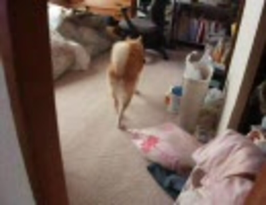 データ詳細 立ち入り禁止の部屋に入ったのがバレた柴犬の反応