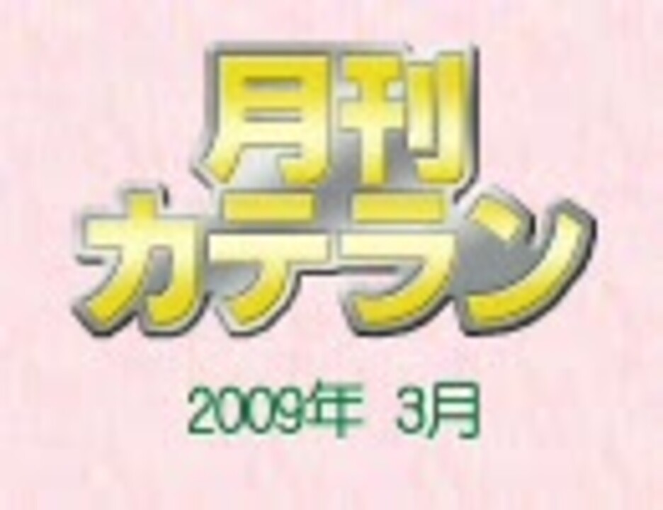 ★月刊ニコニコランキング増刊<br />★集計期間:3月1日5時~4月1日5時<br />★集計対象:全カテゴリ各100位(ランク外は0ポイント扱い)<br />★集計方法<br />動画ポイント:再生数+コメント数×補正値+マイリスト登録数×20<br />カテゴリポイント:カテゴリ所属動画の動画ポイントの合計<br /><br />★紹介動画へのリンクはこちらから→<a href="https://www.nicovideo.jp/mylist/12113490" target="_blank" rel="noopener">mylist/12113490</a><br />★全集計結果一覧はこちらからどうぞ→<a href="http://www39.atwiki.jp/niconicoranking/" target="_blank" rel="noopener nofollow">http://www39.atwiki.jp/niconicoranking/</a><br />★カテラン 2009年2月→<a href="https://www.nicovideo.jp/watch/sm6509420" class="watch">sm6509420</a> ★カテラン4月分→19日夜公開予定<br />★2009年3月総合→<a href="https://www.nicovideo.jp/watch/sm6675116" class="watch">sm6675116</a><br /><br />★試験的にビットレートを高め(300)にしています。