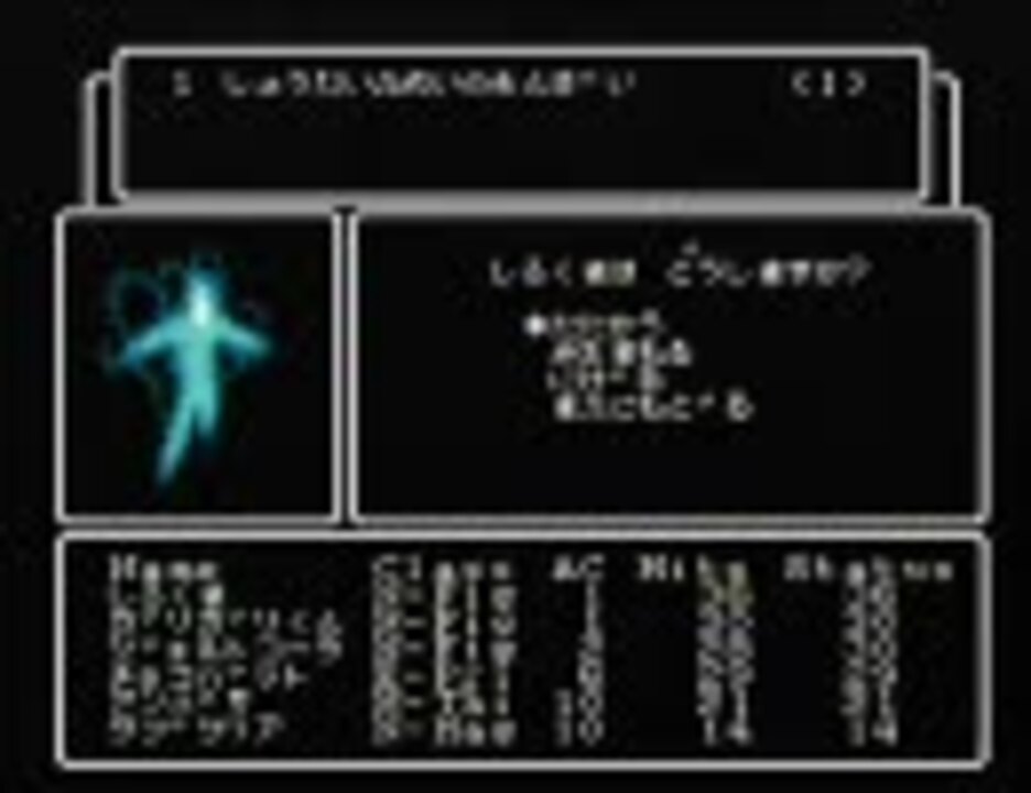 君たちはやれば出来る子だよね。前回、前々回はきっとウケ狙いだったんだよね。分かってるよ。<br />*FC版「ウィザードリィ#3 ダイヤモンドの騎士」縛り有り実況プレイ動画@パート3*<br />▽▲▽▲▽▲<br />*おおっと*Part4 <a href="https://www.nicovideo.jp/watch/sm7052278" class="watch">sm7052278</a><br />*おおっと*Part2 <a href="https://www.nicovideo.jp/watch/sm6913780" class="watch">sm6913780</a><br />*おおっと*マイリスト <a href="https://www.nicovideo.jp/mylist/11915162" target="_blank" rel="noopener">mylist/11915162</a><br />その他の実況 <a href="https://www.nicovideo.jp/mylist/9226118" target="_blank" rel="noopener">mylist/9226118</a><br />*縛りルール*<br />1.キャラクター作成は一発勝負 2.宝箱から逃げてはいけない 3.ノーリセット 4.コメント以外の攻略情報は見ない 5.?<br />*5はいつか本編で説明します。<br />▽▲▽▲▽▲<br />*お知らせ*<br />私個人のコミュニテイを有志の方に作成して頂きました。感謝。co27206<br /><s>ちなみに当方はまだ所属していません</s>入っちゃいました。