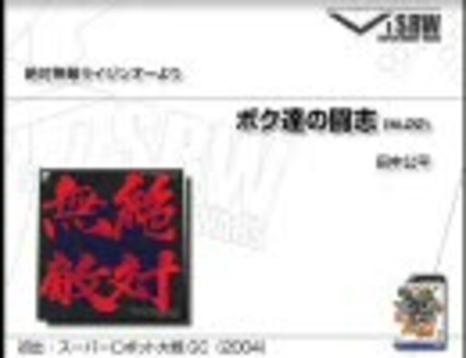 スーパーロボット大戦シリーズで使用された全177曲におよぶ劇伴曲を、原曲フルサイズで初出順に収録いたしました。作業用BGMとしてお楽しみください。<br />なお、微妙ながらも挿入歌と判断した曲、および原曲がクラシック曲、ゲームミュージックであるものは除外いたしました。<br />パート4は、スーパーロボット大戦MXからスーパーロボット大戦Jまで。MX、GCと、面白い選曲の作品がつづきます。<br />追記:輝刃の鼓動、Rでの使用を確認しました。ご指摘ありがとうございます。(誤字の指摘も助かります。)<br />→《1/<a href="https://www.nicovideo.jp/watch/sm7150710" class="watch">sm7150710</a>、2/<a href="https://www.nicovideo.jp/watch/sm7150802" class="watch">sm7150802</a>、3/<a href="https://www.nicovideo.jp/watch/sm7150865" class="watch">sm7150865</a>、5/<a href="https://www.nicovideo.jp/watch/sm7150984" class="watch">sm7150984</a>、6/<a href="https://www.nicovideo.jp/watch/sm14255068" class="watch">sm14255068</a>、7/<a href="https://www.nicovideo.jp/watch/sm2220140" class="watch">sm2220140</a>、8/<a href="https://www.nicovideo.jp/watch/sm329910430" class="watch">sm329910430</a>》<br />その他スパロボ関係は→《<a href="https://www.nicovideo.jp/mylist/7335487" target="_blank" rel="noopener">mylist/7335487</a>》