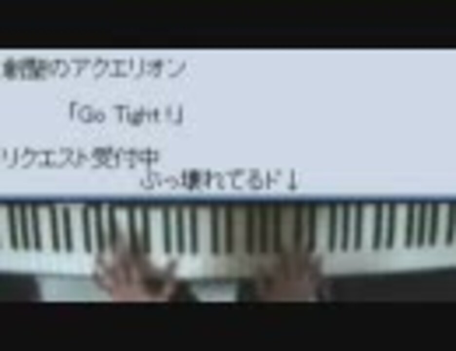 創聖のアクエリオンより「Go Tight!」<br />作詞:岩里祐穂、作曲・編曲:菅野よう子、歌:AKINO<br /><br /><a href="https://www.nicovideo.jp/mylist/1428474" target="_blank" rel="noopener">mylist/1428474</a><br /><br />強く叩くと音がバリバリ鳴るので思いっきり弾けません。<br />左手が単純なのはテンポをキープするためです。