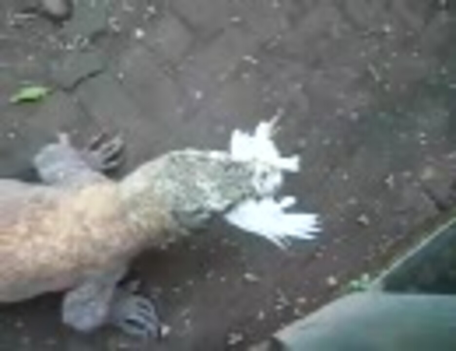 コモドオオトカゲの柵にトリを投げ込んでみた