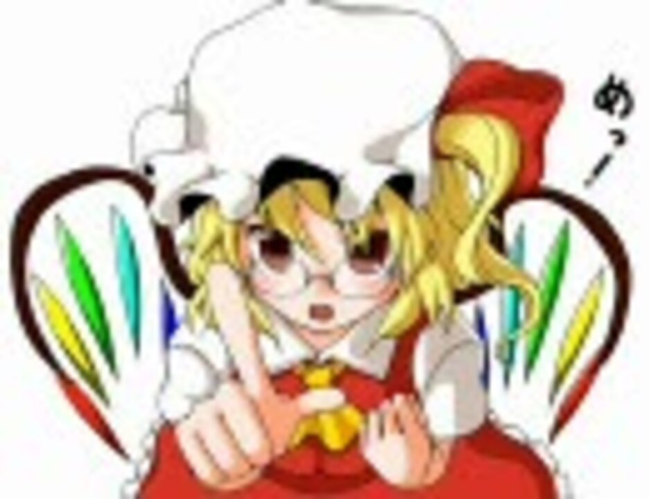 ▼今回の謝辞:ニコニコ動画MUGEN専用絵板より罪だんご様に素敵な絵を描いていただきました。登場と同時にイラスト化されるとは、改めてフランちゃん人気に驚くことしきりであります。ありがとうございました!<br />無限交差<a href="https://www.nicovideo.jp/mylist/8214003" target="_blank" rel="noopener">mylist/8214003</a>遂に完結!大変楽しく視聴させていただきました。この大作の一部に名を残せたことを大変嬉しく思っております。友情出演の欄に名前が載っているという事実で小生は明日を生きて行こうと思います<br />第一話<a href="https://www.nicovideo.jp/watch/sm7187107" class="watch">sm7187107</a>マイリスト<a href="https://www.nicovideo.jp/mylist/8092744" target="_blank" rel="noopener">mylist/8092744</a>ストーリー編<a href="https://www.nicovideo.jp/mylist/12860717" target="_blank" rel="noopener">mylist/12860717</a><br /><a href="https://www.nicovideo.jp/watch/sm7696927" class="watch">sm7696927</a>大闘領導入話更新。<font size="5" color="#0000ff">追記:第三話<a href="https://www.nicovideo.jp/watch/sm8339900" class="watch">sm8339900</a></font>