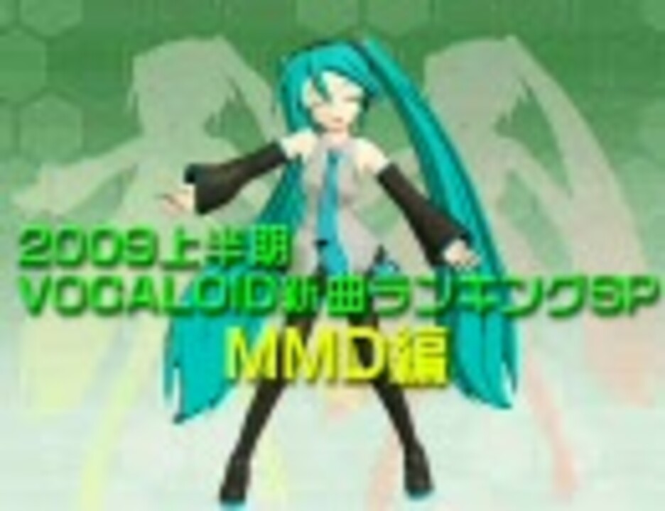 ■集計対象:投稿日が2008年12月25日~2009年6月24日のMMD動画<br />■集計方法:2009/7/1 0時のマイリスト数<br />■その他詳細は動画でご確認ください<br />■プレイリスト:<a href="https://www.nicovideo.jp/mylist/13365918" target="_blank" rel="noopener">mylist/13365918</a><br />■新曲SP KAITO編:<a href="https://www.nicovideo.jp/watch/sm7542524" class="watch">sm7542524</a> 鏡音編:<a href="https://www.nicovideo.jp/watch/sm7533792" class="watch">sm7533792</a> MEIKO編:<a href="https://www.nicovideo.jp/watch/sm7535036" class="watch">sm7535036</a><br /> 初音編:<a href="https://www.nicovideo.jp/watch/sm7534551" class="watch">sm7534551</a>/<a href="https://www.nicovideo.jp/watch/sm7534664" class="watch">sm7534664</a> がくぽ編:<a href="https://www.nicovideo.jp/watch/sm7548155" class="watch">sm7548155</a> 巡音編:<a href="https://www.nicovideo.jp/watch/sm7542692" class="watch">sm7542692</a><br /> 複数・海外編:<a href="https://www.nicovideo.jp/watch/sm7543196" class="watch">sm7543196</a> PV・映像編:<a href="https://www.nicovideo.jp/watch/sm7548235" class="watch">sm7548235</a> MMD編:<a href="https://www.nicovideo.jp/watch/sm7536293" class="watch">sm7536293</a><br />■スクリプトで次の新曲SPに飛びます 次:<a href="https://www.nicovideo.jp/watch/sm7542524" class="watch">sm7542524</a>(KAITO編)<br /><br />■2009上半期新曲ランキングSPのマイリスト→<a href="https://www.nicovideo.jp/mylist/13359098" target="_blank" rel="noopener">mylist/13359098</a><br />