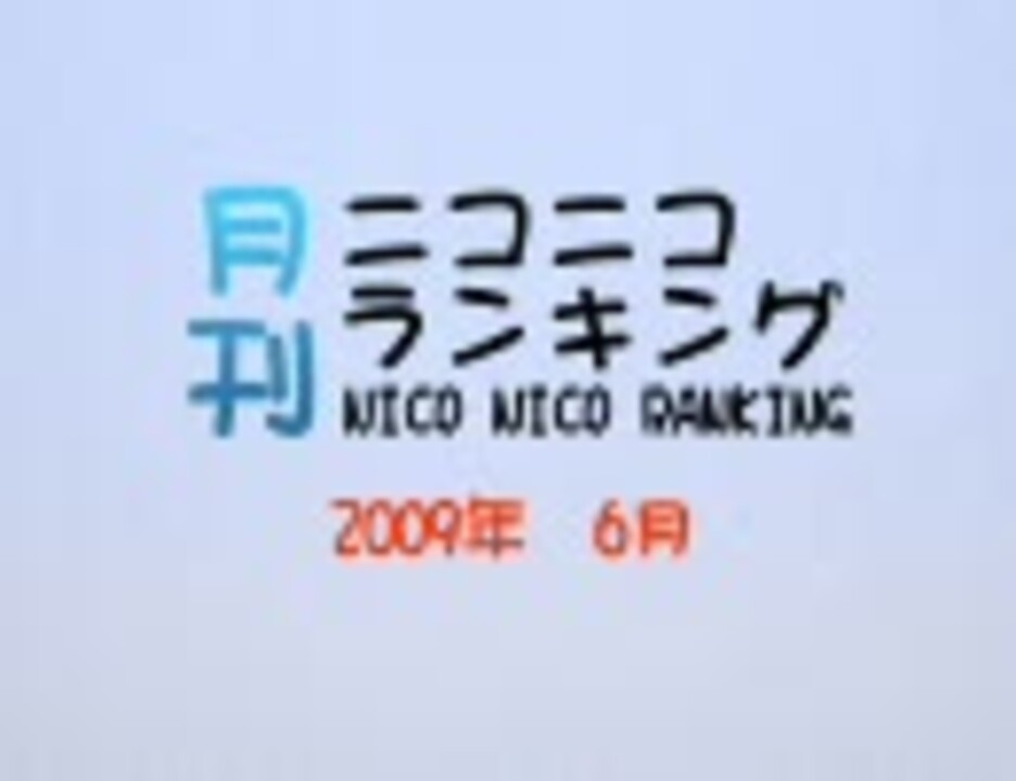★集計期間:6月1日5時~7月1日6時<br />★集計方法:再生数+コメント数×補正値+マイリスト登録数×20<br />★集計対象:すべての各1000位と全カテゴリ各100位(RSS対応)<br /><br />★トップ30へのリンクはこちらから→公開終了しました下へどうぞ<br />★全集計結果一覧はこちらからどうぞ→<a href="http://www39.atwiki.jp/niconicoranking/" target="_blank" rel="noopener nofollow">http://www39.atwiki.jp/niconicoranking/</a><br />★月刊自身のマイリスト→<a href="https://www.nicovideo.jp/mylist/2995418" target="_blank" rel="noopener">mylist/2995418</a><br />★2009年5月→<a href="https://www.nicovideo.jp/watch/sm7344357" class="watch">sm7344357</a> 2009年7月→<a href="https://www.nicovideo.jp/watch/sm8012840" class="watch">sm8012840</a><br /><br />★カテラン6月分→<a href="https://www.nicovideo.jp/watch/sm7791501" class="watch">sm7791501</a><br /><br />★ご意見ご感想などあれば掲示板までどうぞ<br /><a href="http://www2.atchs.jp/niconicoranking/" target="_blank" rel="noopener nofollow">http://www2.atchs.jp/niconicoranking/</a><br /><br /><br />★SP5のCM単体はこちら→<a href="https://www.nicovideo.jp/watch/sm7679138" class="watch">sm7679138</a>