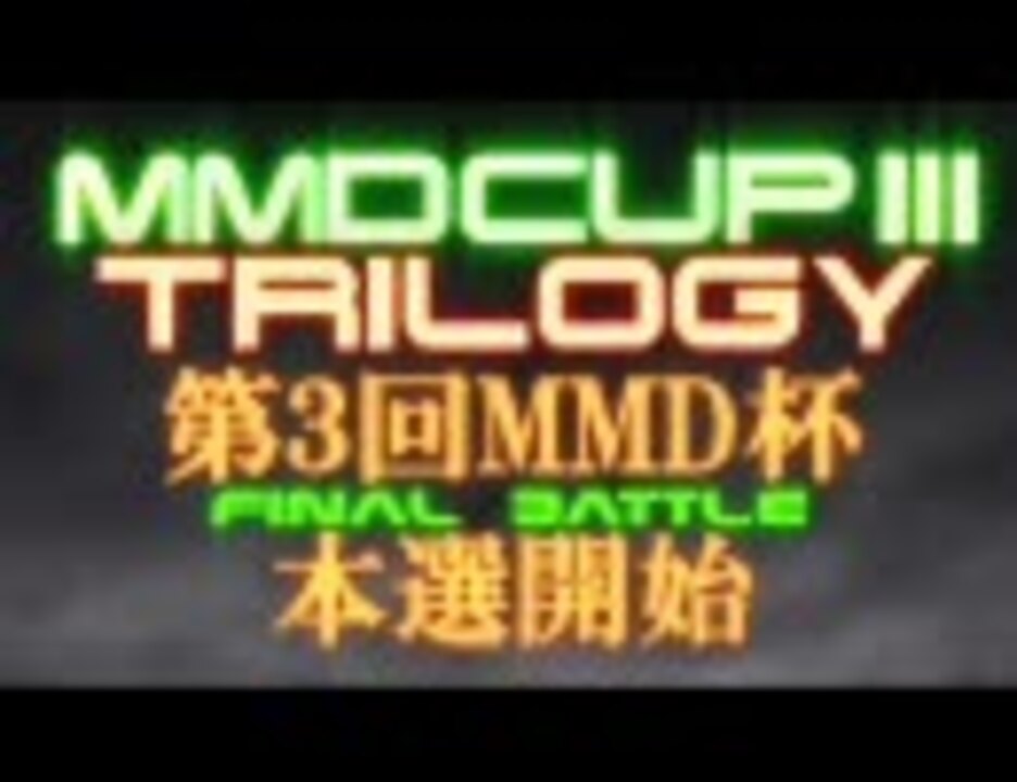 ◆第3回MikuMikuDanceCup(MMD杯)本選開始動画です。<br />いよいよ第3回目のMMD杯本選が始まります!最後までお付き合い下さい!<br /><br />■詳細は大会サイトへ⇒<b><a href="http://www31.atwiki.jp/mmdcup/" target="_blank" rel="noopener nofollow">http://www31.atwiki.jp/mmdcup/</a></b><br />または「MMD杯」大百科項目へ!<br />■公式動画リスト⇒<a href="https://www.nicovideo.jp/mylist/10440621" target="_blank" rel="noopener">mylist/10440621</a><br />■本選参加動画マイリスト<br />全て⇒<a href="https://www.nicovideo.jp/mylist/13918375" target="_blank" rel="noopener">mylist/13918375</a><br />テーマ1「季節」:<a href="https://www.nicovideo.jp/mylist/13918437" target="_blank" rel="noopener">mylist/13918437</a><br />テーマ2「未来」:<a href="https://www.nicovideo.jp/mylist/13918444" target="_blank" rel="noopener">mylist/13918444</a><br />テーマ3「楽」 :<a href="https://www.nicovideo.jp/mylist/13918447" target="_blank" rel="noopener">mylist/13918447</a><br /><br />Movie Staff<br />Music:Hal(ポン酢P) / Edit:かんな<br />エンコード:つんでれんこ<br /><br />■第3回MMD杯ユーザーニコ割<br />@CM <a href="https://www.nicovideo.jp/watch/nm7373916" class="watch">nm7373916</a> 再生 dic/MMD杯<br />@CM <a href="https://www.nicovideo.jp/watch/nm7373916" class="watch">nm7373916</a> 再生 <a href="https://www.nicovideo.jp/watch/sm7455471" class="watch">sm7455471</a><br />