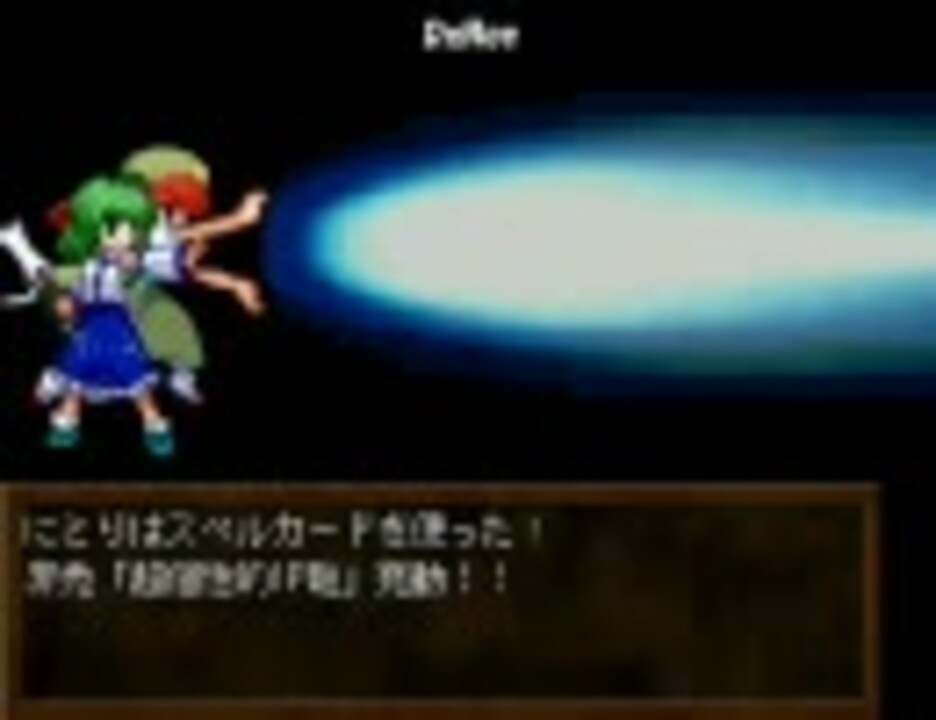 <font color="red">※ご覧になる前にマイリスの注意書きをご一読下さい。</font><br />・本家様復活でめでたい事山の如しなんだが?hai!続きが気になるけど無理せずに頑張ってくだしあ!<br />・三月精3巻予約してまだ届かない・・・返品したい・・・。<br />・道中雑魚の自爆は残りHPの半分のダメージ、それ以外は残りHPそのままダメージ。<br />・前回文のTPが鬼の加速度で貯まってたのは不具合なので修正しました。<br />・河装備のメインストーリーは次回で一旦落ち着く予定です。<br />前<a href="https://www.nicovideo.jp/watch/sm7961559" class="watch">sm7961559</a> 次<a href="https://www.nicovideo.jp/watch/sm8405947" class="watch">sm8405947</a> 河装備まとめ⇒<a href="https://www.nicovideo.jp/mylist/10874274" target="_blank" rel="noopener">mylist/10874274</a> 本家様⇒<a href="https://www.nicovideo.jp/mylist/9829867" target="_blank" rel="noopener">mylist/9829867</a> 本家代理様⇒<a href="https://www.nicovideo.jp/mylist/31921917" target="_blank" rel="noopener">mylist/31921917</a>