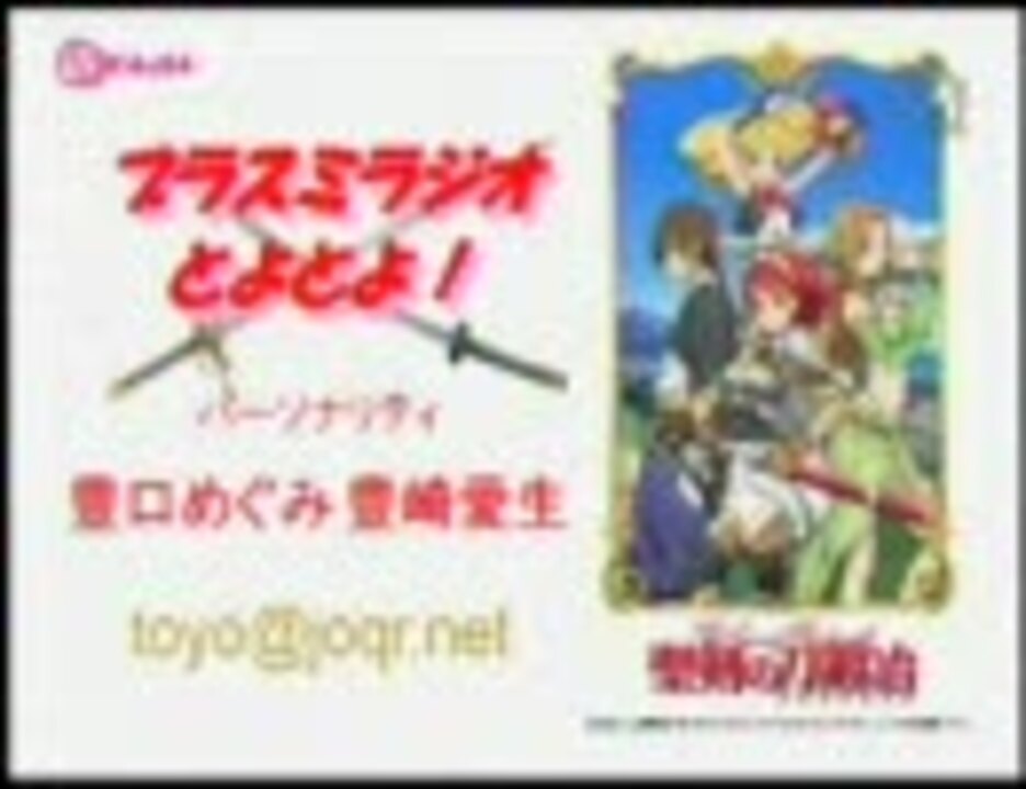 2009. 9. 5(土)放送分 豊口めぐみ・豊崎愛生 // 隔週土曜20時~21時に放送(リピート有無不明) // ●原作が同名人気ライトノベルであり、2009年10月からテレビアニメがスタートする『聖剣の刀鍛冶(ブラックスミス)』の世界観を元に、工房『リーザ』よりお送りする職人系ラジオ番組です!!「豊口vs豊崎」=A&G「ベテランVS新人」ラジオスターが相まみえるトーク尽くしの1時間です。
