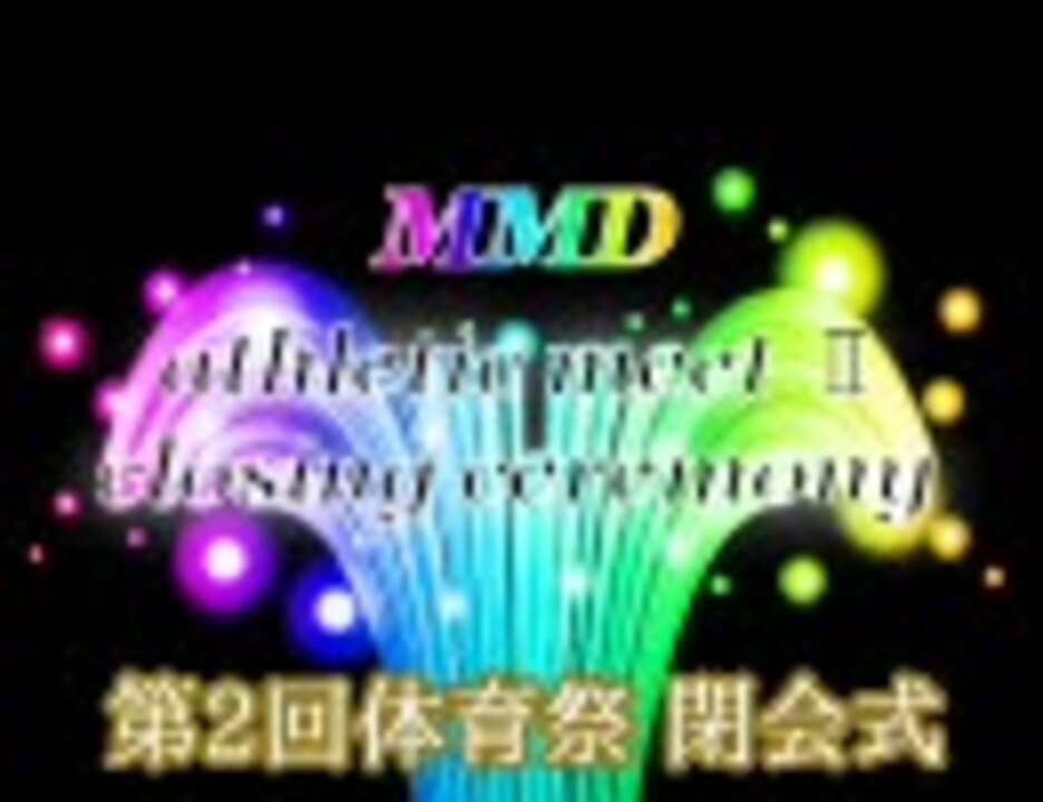MMDを用いた体育祭の閉会式です。<br />全ての参加者と視聴者、協力者の皆様へ、ありがとうございました!<br /><br />■紹介動画一覧<a href="https://www.nicovideo.jp/mylist/15197632" target="_blank" rel="noopener">mylist/15197632</a><br />■タグ→ 第2回MMD体育祭<br />■公開マイリストの『プログラム』→告知動画<a href="https://www.nicovideo.jp/watch/sm8356521" class="watch">sm8356521</a>の「登録しているマイリスト」より<br /><br />体育祭についてはVPVPwikiへ<br /><a href="http://www6.atwiki.jp/vpvpwiki/pages/221.html" target="_blank" rel="noopener nofollow">http://www6.atwiki.jp/vpvpwiki/pages/221.html</a><br /><br />★体育祭参加の方へ:お疲れ様でした!<br />参加賞を下記で配布しております(10/31まで)<br /><a href="http://www6.atwiki.jp/vpvpwiki/pages/226.html" target="_blank" rel="noopener nofollow">http://www6.atwiki.jp/vpvpwiki/pages/226.html</a><br /><br />増刊ランキング<a href="https://www.nicovideo.jp/watch/sm8553583" class="watch">sm8553583</a><br />関連動画(前回):第1回体育祭作品<a href="https://www.nicovideo.jp/mylist/8447563" target="_blank" rel="noopener">mylist/8447563</a> 連携動画<a href="https://www.nicovideo.jp/mylist/8639666" target="_blank" rel="noopener">mylist/8639666</a><br /><br />■OP曲 Meiko will rock you <a href="https://www.nicovideo.jp/watch/sm8466867" class="watch">sm8466867</a> functionさん<a href="https://www.nicovideo.jp/mylist/13529880" target="_blank" rel="noopener">mylist/13529880</a> 哲犬さん<a href="https://www.nicovideo.jp/mylist/5355093" target="_blank" rel="noopener">mylist/5355093</a><br />■間奏曲 town タカコンP <a href="https://www.nicovideo.jp/watch/sm8478770" class="watch">sm8478770</a><br />■ED曲 Let's Dance Now! ホロンPアレンジ <a href="https://www.nicovideo.jp/watch/sm8325918" class="watch">sm8325918</a>