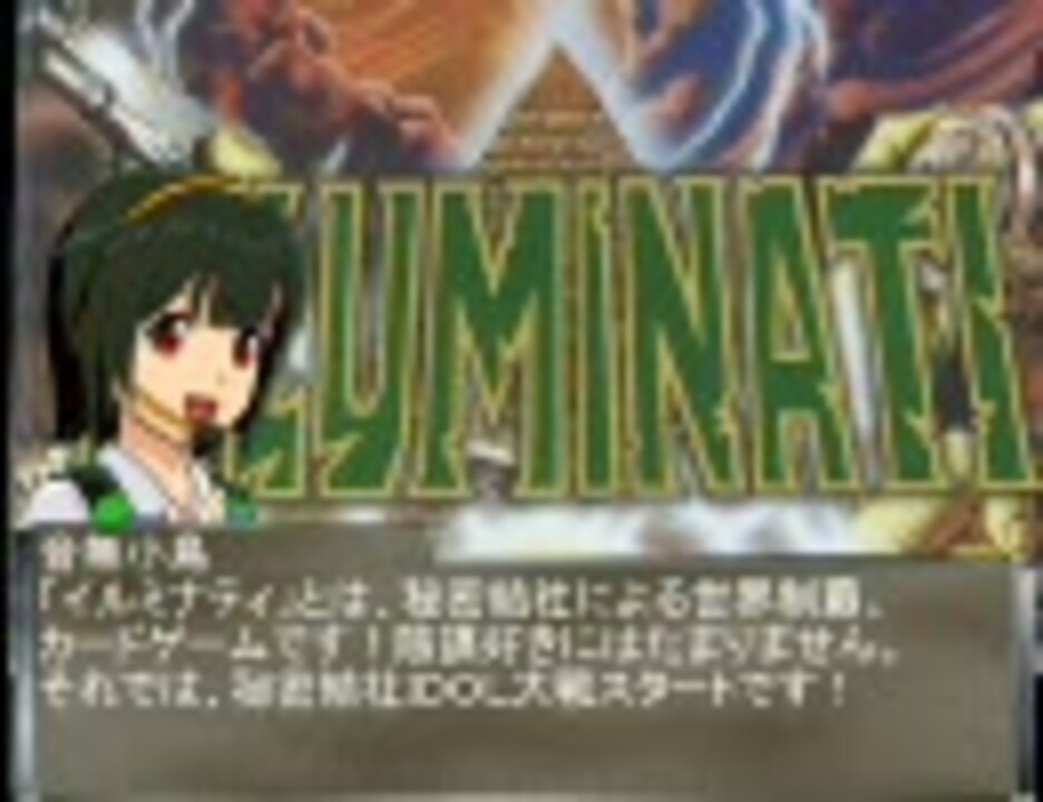 イルミナティ「Illuminati」は秘密結社の世界征服のゲームです。<br />陰謀がいっぱいですが、製作者の理解不足で、かけ足です。<br />説明書が英語で、もっと特別ルールがあるらしいのですがよくわかりません。<br /><br />入手困難といわれていますが、goopingの個人輸入で35ドルでしたが、経費、運送費込みで9千円になってしまいました。<br />アマゾンでも海外取り寄せで2週間ほどかかります。<a href="http://www.amazon.co.jp/Illuminati-Conspiracy-Steve-Jackson-games/dp/1556343841" target="_blank" rel="noopener nofollow">http://www.amazon.co.jp/Illuminati-Conspiracy-Steve-Jackson-games/dp/1556343841</a><br />少し世界IDOL大戦を引き継いでいるので、よかったら見てください。<a href="https://www.nicovideo.jp/mylist/7437665" target="_blank" rel="noopener">mylist/7437665</a><br />(追記)自分は英語がさっぱりです。続編できました <a href="https://www.nicovideo.jp/watch/sm10260404" class="watch">sm10260404</a><br />