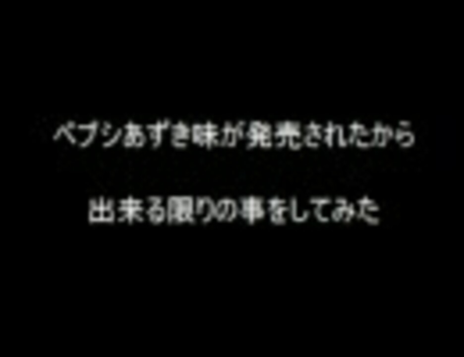 2009年10月20日(火)に発売されたペプシあずき味<br /><a href="http://www.pepsi.co.jp/products/azuki.html" target="_blank" rel="noopener nofollow">http://www.pepsi.co.jp/products/azuki.html</a><br />ただ飲むだけじゃ芸が無いよね!<br />なのでやってみましょう!<br /><br />前回までのリクエストでいただいた中からピックアップしてやってみました!<br /><br />まさかのインフル感染・・・あずきのせいだとは思いたくない・・・<br /><br />ペプシあずき味 1stステージ【<a href="https://www.nicovideo.jp/watch/sm8562568" class="watch">sm8562568</a>】<br />ペプシあずき味 2ndステージ【<a href="https://www.nicovideo.jp/watch/sm8567495" class="watch">sm8567495</a>】<br />ペプシあずき味 3rdステージ【<a href="https://www.nicovideo.jp/watch/sm8579929" class="watch">sm8579929</a>】<br />ペプシあずき味 4thステージ【<a href="https://www.nicovideo.jp/watch/sm8604362" class="watch">sm8604362</a>】<br />