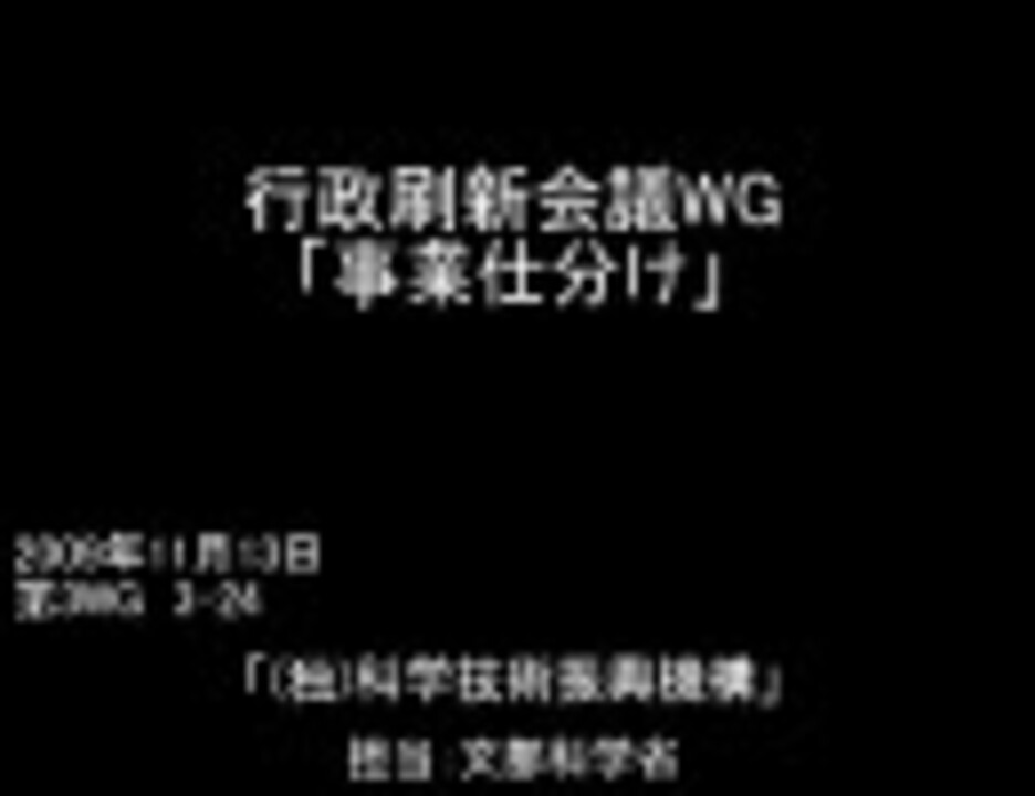 行政刷新会議WG「事業仕分け」2009年11月13日第3WG、事業番号3-24<br />項目:(独)科学技術振興機構(理科支援員等配置事業、日本科学未来館)<br />担当府省:文部科学省<br />■毛利さん登場です■<a href="https://www.nicovideo.jp/mylist/15834251" target="_blank" rel="noopener">mylist/15834251</a><br />■次の事項は行政刷新会議HPにて確認してください。<a href="http://www.cao.go.jp/sasshin/kaigi/honkaigi/d2/shidai.html" target="_blank" rel="noopener nofollow">http://www.cao.go.jp/sasshin/kaigi/honkaigi/d2/shidai.html</a><br />・事業仕分けの進め方<br />・評価者名簿(国会議員)(民間有識者)<br /> <font size="+1" color="red">■配付資料及び評価コメント、評決結果は次のページより入手できます</font><br /><a href="http://www.cao.go.jp/sasshin/oshirase/shiryo.html" target="_blank" rel="noopener nofollow">http://www.cao.go.jp/sasshin/oshirase/shiryo.html</a> <br /><br /><br />◆「平成22年度予算案への反映状況について」◆(行政刷新会議(第5回)より)<br />資料1-2【pdf形式】<br /><a href="http://www.cao.go.jp/sasshin/kaigi/honkaigi/d5/pdf/s1-2.pdf" target="_blank" rel="noopener nofollow">http://www.cao.go.jp/sasshin/kaigi/honkaigi/d5/pdf/s1-2.pdf</a>