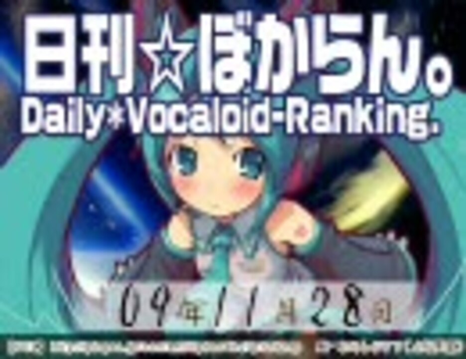 ・集計期間:~11月28日20時<br />・集計方法:再生数+コメント数×3+マイリスト数×15<br />(「コメント数×3」が再生数を超える場合、その分はカウントしません)<br />・集計対象:投稿日が1週間以内。<b>特定ワードがタイトルに含まれるか、タグロックされた動画</b><br />過去にランクインした動画は1位を除き対象外(1位は前日2~8位も対象)<br />詳しくは <a href="http://www.daily-vocaran.info" target="_blank" rel="noopener nofollow">http://www.daily-vocaran.info</a><br /><br />9 <a href="https://www.nicovideo.jp/watch/sm8921954" class="watch">sm8921954</a> 8 <a href="https://www.nicovideo.jp/watch/sm8900668" class="watch">sm8900668</a> 7 <a href="https://www.nicovideo.jp/watch/sm8919155" class="watch">sm8919155</a> 6 <a href="https://www.nicovideo.jp/watch/sm8928368" class="watch">sm8928368</a> <br />5 <a href="https://www.nicovideo.jp/watch/nm8897974" class="watch">nm8897974</a> 4 <a href="https://www.nicovideo.jp/watch/so8900221" class="watch">so8900221</a> 3 <a href="https://www.nicovideo.jp/watch/sm8933048" class="watch">sm8933048</a> 2 <a href="https://www.nicovideo.jp/watch/sm8918900" class="watch">sm8918900</a> <br />1 <a href="https://www.nicovideo.jp/watch/sm8933166" class="watch">sm8933166</a> <br />a <a href="https://www.nicovideo.jp/watch/sm5378862" class="watch">sm5378862</a> b <a href="https://www.nicovideo.jp/watch/sm8934071" class="watch">sm8934071</a> c <a href="https://www.nicovideo.jp/watch/sm8937853" class="watch">sm8937853</a> d <a href="https://www.nicovideo.jp/watch/sm8931691" class="watch">sm8931691</a> e <a href="https://www.nicovideo.jp/watch/nm8933625" class="watch">nm8933625</a> f <a href="https://www.nicovideo.jp/watch/sm8889750" class="watch">sm8889750</a> <br />g <a href="https://www.nicovideo.jp/watch/sm8903614" class="watch">sm8903614</a> h <a href="https://www.nicovideo.jp/watch/sm8902410" class="watch">sm8902410</a> i <a href="https://www.nicovideo.jp/watch/sm8908413" class="watch">sm8908413</a> j <a href="https://www.nicovideo.jp/watch/sm8917354" class="watch">sm8917354</a> <br /><br />日刊最新<a href="https://www.nicovideo.jp/mylist/5024496" target="_blank" rel="noopener">mylist/5024496</a> 全部<a href="https://www.nicovideo.jp/mylist/14673695" target="_blank" rel="noopener">mylist/14673695</a><br />11/27 <a href="https://www.nicovideo.jp/watch/sm8933055" class="watch">sm8933055</a> 11/29 <a href="https://www.nicovideo.jp/watch/sm8955328" class="watch">sm8955328</a><br />