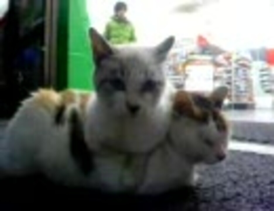 常に自動ドア前でじっとしている猫。エサ目当てでここに居座っているらしいが、真実は不明