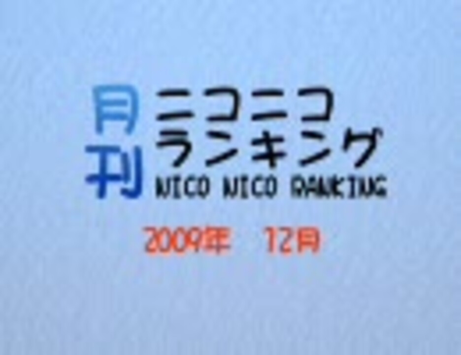 ★集計期間:12月1日5時~1月1日6時<br />★集計方法:再生数+コメント数×補正値+マイリスト登録数×20<br />★集計対象:すべての各1000位と全カテゴリ各100位(RSS対応)<br /><br />★トップ30へのリンクはこちらから→公開終了しました。↓からどうぞ。<br />★全集計結果一覧はこちらからどうぞ→<a href="http://www39.atwiki.jp/niconicoranking/" target="_blank" rel="noopener nofollow">http://www39.atwiki.jp/niconicoranking/</a><br />★月刊自身のマイリスト→<a href="https://www.nicovideo.jp/mylist/2995418" target="_blank" rel="noopener">mylist/2995418</a><br />★2009年11月→<a href="https://www.nicovideo.jp/watch/sm9049734" class="watch">sm9049734</a> 2010年1月→<a href="https://www.nicovideo.jp/watch/sm9635445" class="watch">sm9635445</a><br /><br />★カテラン12月分→<a href="https://www.nicovideo.jp/watch/sm9416343" class="watch">sm9416343</a><br />★ニコランSP6公開中→<a href="https://www.nicovideo.jp/watch/sm9248180" class="watch">sm9248180</a><br /><br />★ご意見ご感想などあれば掲示板までどうぞ<br /><a href="http://www2.atchs.jp/niconicoranking/" target="_blank" rel="noopener nofollow">http://www2.atchs.jp/niconicoranking/</a><br /><br />