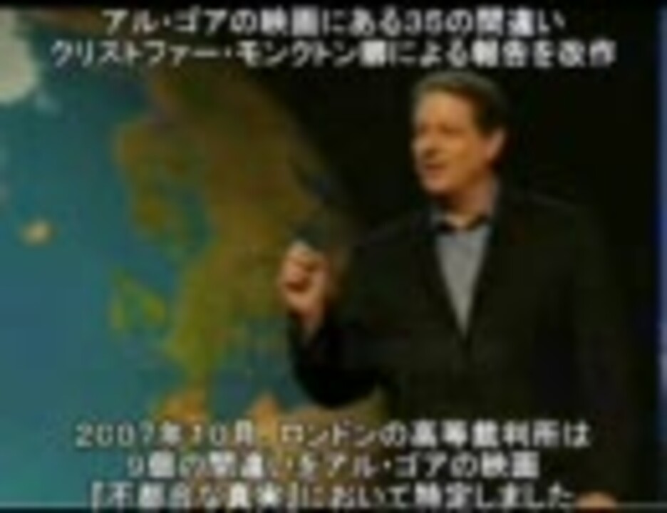 Lord Christopher Moncktonによる説明で内容は題名の通りです。 実はこの35個以外にもあり、実際にそれをプレゼンしている科学者もいますが、この内容で十分でしょう。 お勧め1:パート2⇒<a href="https://www.nicovideo.jp/watch/sm9278186" class="watch">sm9278186</a> お勧め2:『アル・ゴア、警告家らへ『まさにモラルの問題だ』』⇒<a href="https://www.nicovideo.jp/watch/sm9211273" class="watch">sm9211273</a> お勧め3:『地球温暖化=『破滅?違う!』ハイライト』⇒<a href="https://www.nicovideo.jp/watch/sm6931735" class="watch">sm6931735</a> お勧め4:『Greenpeaceにインタビュー』⇒<a href="https://www.nicovideo.jp/watch/sm9246337" class="watch">sm9246337</a> 詳細:35 Inconvenient Truths <a href="http://scienceandpublicpolicy.org/monckton/goreerrors.html" target="_blank" rel="noopener nofollow">http://scienceandpublicpolicy.org/monckton/goreerrors.html</a>