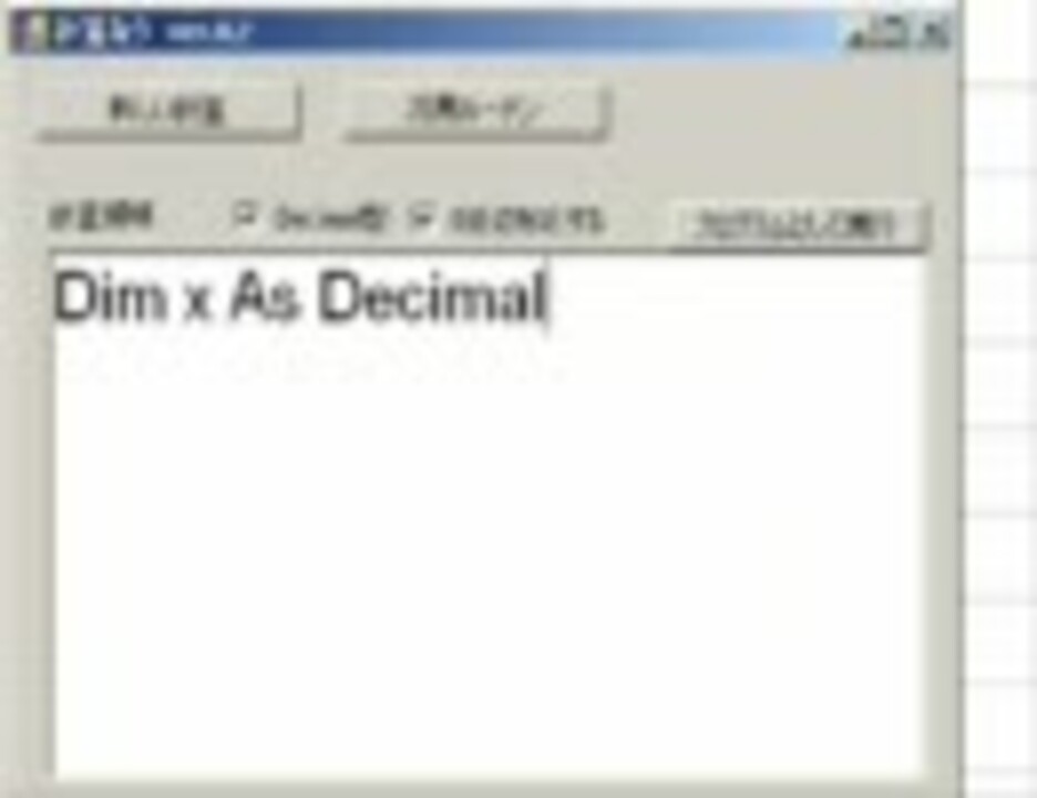 よしなしプログラミング風景みたいなのを、そこはかとなく上げてみます。いずれは初心者向け講座なども作りたいですが、今回は1つのアプリを作る様子をお伝えしたいと思っています。現在も開発中です。 ver2:<a href="https://www.nicovideo.jp/watch/sm9283619" class="watch">sm9283619</a> ver3:<a href="https://www.nicovideo.jp/watch/sm9303892" class="watch">sm9303892</a> ver5:<a href="https://www.nicovideo.jp/watch/sm9437446" class="watch">sm9437446</a> (その他の動画【ふざけるな!→プログラム開発シリーズ】太鼓のオワタツジン:<a href="https://www.nicovideo.jp/watch/sm10814313" class="watch">sm10814313</a> BrainForce99面(TAS風味):<a href="https://www.nicovideo.jp/watch/sm10808759" class="watch">sm10808759</a> 【他】株で犬儲け:<a href="https://www.nicovideo.jp/mylist/16466431" target="_blank" rel="noopener">mylist/16466431</a> 東大講義雰囲気動画:<a href="https://www.nicovideo.jp/watch/sm10738644" class="watch">sm10738644</a> 麻雀統計学講座:<a href="https://www.nicovideo.jp/mylist/16466561" target="_blank" rel="noopener">mylist/16466561</a> 超かんたん麻雀ルール入門:<a href="https://www.nicovideo.jp/watch/sm9083576" class="watch">sm9083576</a> とつげき東北全般:<a href="https://www.nicovideo.jp/mylist/16466591" target="_blank" rel="noopener">mylist/16466591</a>)