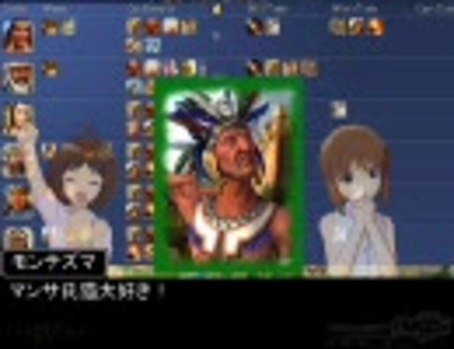 第3回。内政が続くので3939動画。<br />動画中に描写はありませんが、ゆきぽがこつこつと古い技術を売り飛ばして小銭を稼いでいたりします。<br /><br />Q:教皇庁は?<br />A:マンサが儒教のものを建てたので、とりあえずハンマーボーナスだけ頂いておきました。<br />大局的にはきわめてどうでも良かったので、動画中では触れず。<br /><br />使用ゲーム:Civilization4 -Beyond the Sword- Ver.3.19(E)<br />難易度:皇帝<br />マップタイプ:パンゲア標準<br />ビルダー封印<br /><br />第2回><a href="https://www.nicovideo.jp/watch/sm9298156" class="watch">sm9298156</a> 第4回><a href="https://www.nicovideo.jp/watch/sm9425352" class="watch">sm9425352</a><br />作品リスト><a href="https://www.nicovideo.jp/mylist/16955613" target="_blank" rel="noopener">mylist/16955613</a><br /><br />※この動画は、一度クリアしたゲームのセーブデータを追いかけて再構成しています。<br />ぶっちゃけ、うp主には難易度皇帝を確実にクリアする技量は無いので、その辺りはご理解ください。