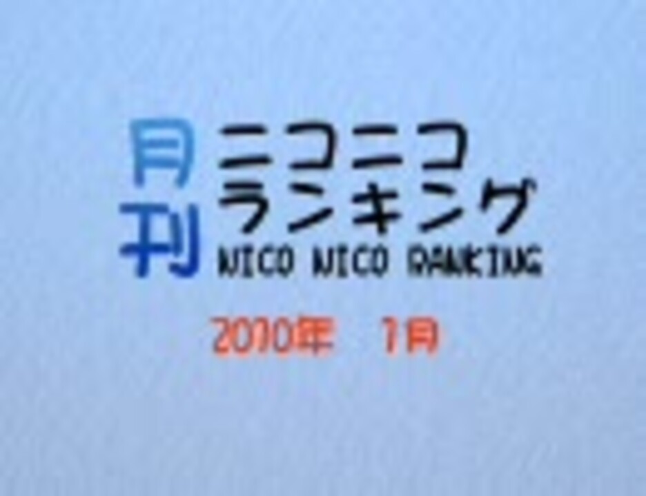 ★集計期間:1月1日5時~2月1日6時<br />★集計方法:再生数+コメント数×補正値+マイリスト登録数×20<br />★集計対象:すべての各1000位と全カテゴリ各100位(RSS対応)<br /><br />★トップ30へのリンクはこちらから→<a href="https://www.nicovideo.jp/mylist/17513719" target="_blank" rel="noopener">mylist/17513719</a><br />★全集計結果一覧はこちらからどうぞ→公開終了しました。↓からどうぞ<br />★月刊自身のマイリスト→<a href="https://www.nicovideo.jp/mylist/2995418" target="_blank" rel="noopener">mylist/2995418</a><br />★2009年12月→<a href="https://www.nicovideo.jp/watch/sm9268655" class="watch">sm9268655</a> 2010年2月→<a href="https://www.nicovideo.jp/watch/sm9948264" class="watch">sm9948264</a><br /><br />★カテラン1月分→<a href="https://www.nicovideo.jp/watch/sm9713606" class="watch">sm9713606</a><br /><br />★ご意見ご感想などあれば掲示板までどうぞ<br /><a href="http://www2.atchs.jp/niconicoranking/" target="_blank" rel="noopener nofollow">http://www2.atchs.jp/niconicoranking/</a><br /><br />
