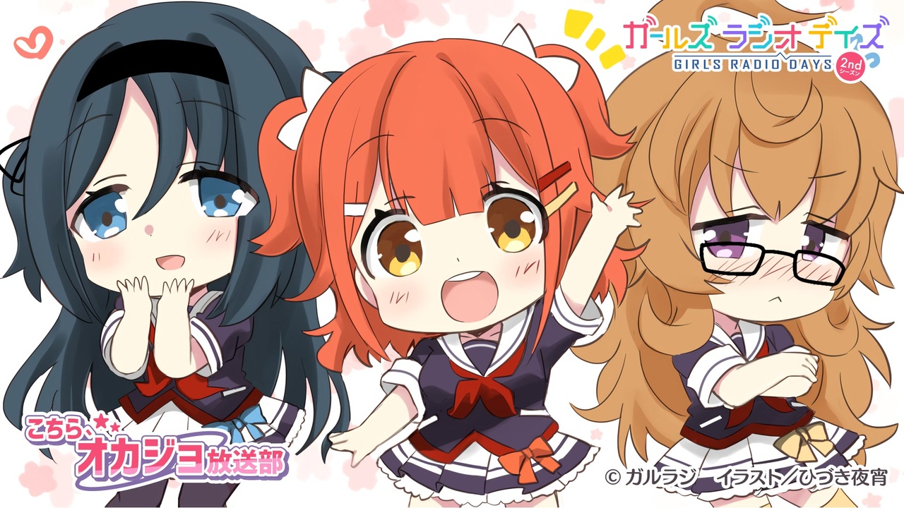 <font size="5" color="#f44d78">NEOPASA岡崎<br>「こちら、オカジョ放送部」<br></font><br>● 二兎 春花(CV:本渡 楓)<br>● 萬歳 智加(CV:瀬戸 ひかり)<br>● 桜泉 真維(CV:野村 麻衣子)<br>----------------------------------------------------------<br>「ガールズ ラジオ デイズ」(ガルラジ)は、<br>地方で暮らすごく普通の女の子たちが、ふとしたきっかけでラジオ番組を自主運営することになる--。<br>そんな彼女たちの日常と番組制作に悪戦苦闘する姿を描いた青春物語です。<br>愛知県・岡崎、静岡県・富士川、山梨県・双葉、石川県・徳光、三重県・御在所と、<br>実在する5つの高速道路のサービスエリアが、彼女たちの拠点=スタジオ。<br><br>そんな彼女たちが物語から現実世界に飛び出した!?<br>物語に登場するヒトや場所、また、物語ではわからなかった番組内容など、彼女たちのラジオが実際に聴けます。<br>ラジオに青春を捧げる彼女たちの物語--それが、ネットラジオ番組「ガールズ ラジオ デイズ」(ガルラジ)。<br>リアルでありリアルでない、物語であり物語でな<br>い。<br>そんなちょっぴり変わったお話をみなさん応援してください。<br><br>詳しくは<a href="https://garuradi.jp/"><font color="#FF0000">「ガルラジ」公式サイト</font></a>をチェック♪<br><br>*******************<br><b>■ 各チームの1stシーズンマイリスト</b><br>チーム岡崎 : <a href="https://www.nicovideo.jp/mylist/65937605" target="_blank" rel="noopener">mylist/65937605</a> / チーム富士川 : <a href="https://www.nicovideo.jp/mylist/65937694" target="_blank" rel="noopener">mylist/65937694</a> / チーム双葉 : <a href="https://www.nicovideo.jp/mylist/65938013" target="_blank" rel="noopener">mylist/65938013</a><br>チーム徳光 : <a href="https://www.nicovideo.jp/mylist/65938017" target="_blank" rel="noopener">mylist/65938017</a> / チーム御在所 : <a href="https://www.nicovideo.jp/mylist/65938025" target="_blank" rel="noopener">mylist/65938025</a><br><br><b>■ 物販情報</b><br>ニコニコ超会議2019で販売した「ガルラジ」初グッズがご要望に応えて登場!<br>グッズのご購入は<a href="https://jpstore.dwango.jp/products/list.php?category_id=92"><font color="#FF0000">★こちら★</font></a><br>