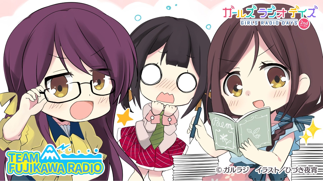 <font size="5" color="#23c7e2">EXPASA富士川<br>「TEAM FUJIKAWA RADIO」<br></font><br>●年魚市 すず(CV:春野 杏)<br>●白糸 結(CV:新田 ひより)<br>●金明 凪紗(CV:山北 早紀)<br>----------------------------------------------------------<br>「ガールズ ラジオ デイズ」(ガルラジ)は、<br>地方で暮らすごく普通の女の子たちが、ふとしたきっかけでラジオ番組を自主運営することになる--。<br>そんな彼女たちの日常と番組制作に悪戦苦闘する姿を描いた青春物語です。<br>愛知県・岡崎、静岡県・富士川、山梨県・双葉、石川県・徳光、三重県・御在所と、<br>実在する5つの高速道路のサービスエリアが、彼女たちの拠点=スタジオ。<br><br>そんな彼女たちが物語から現実世界に飛び出した!?<br>物語に登場するヒトや場所、また、物語ではわからなかった番組内容など、彼女たちのラジオが実際に聴けます。<br>ラジオに青春を捧げる彼女たちの物語--それが、ネットラジオ番組「ガールズ ラジオ デイズ」(ガルラジ)。<br>リアルでありリアルでない、物語であり物語でな<br>い。<br>そんなちょっぴり変わったお話をみなさん応援してください。<br><br>詳しくは<a href="https://garuradi.jp/"><font color="#FF0000">「ガルラジ」公式サイト</font></a>をチェック♪<br><br>*******************<br><b>■ 各チームのマイリスト</b><br>チーム岡崎 : <a href="https://www.nicovideo.jp/mylist/65937605" target="_blank" rel="noopener">mylist/65937605</a> / チーム富士川 : <a href="https://www.nicovideo.jp/mylist/65937694" target="_blank" rel="noopener">mylist/65937694</a>/ チーム双葉 : <a href="https://www.nicovideo.jp/mylist/65938013" target="_blank" rel="noopener">mylist/65938013</a><br>チーム徳光 : <a href="https://www.nicovideo.jp/mylist/65938017" target="_blank" rel="noopener">mylist/65938017</a> / チーム御在所 : <a href="https://www.nicovideo.jp/mylist/65938025" target="_blank" rel="noopener">mylist/65938025</a><br><br><b>■ 物販情報</b><br>ニコニコ超会議2019で販売した「ガルラジ」初グッズがご要望に応えて登場!<br>グッズのご購入は<a href="https://jpstore.dwango.jp/products/list.php?category_id=92"><font color="#FF0000">★こちら★</font></a>
