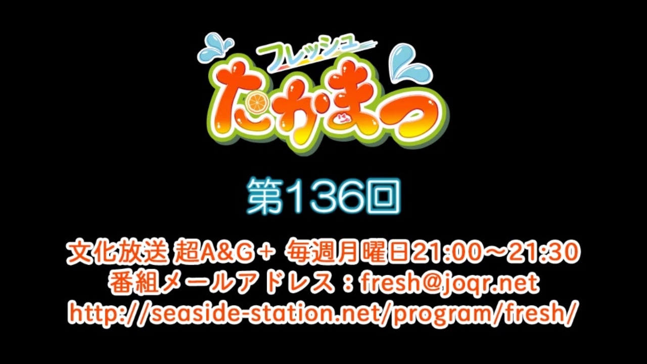 この番組はフレッシュな声優、高田憂希と松田颯水による“フレッシュ”なトークバトルバラエティ番組です。<br><br><span style="color: #ffa500;"><strong><a href="http://shop.seaside-c.jp/?mode=cate&cbid=2354684&csid=0" target="_blank">DVD、DJCDなど番組商品がシーサイドSHOPにて好評発売中!</a></strong></span><br><br>■番組名: フレッシュたかまつ<br>■放送局: <a href="http://www.agqr.jp/" target="_blank">文化放送超!A&G+</a><br>■放送日: 毎週月曜日 21:00~21:30<br>■アーカイブ更新: 毎週火曜日20:00<br>■パーソナリティー: 高田憂希、松田颯水<br>■番組公式サイト: <a href="http://seaside-station.net/program/fresh/" target="_blank">http://seaside-station.net/program/fresh/</a><br>■番組ツイッター: <a href="https://twitter.com/takamatsu_ag" target="_blank">https://twitter.com/takamatsu_ag</a><br>■番組メールアドレス: <a href="mailto:fresh@joqr.net" target="_blank">お便りはコチラ</a>