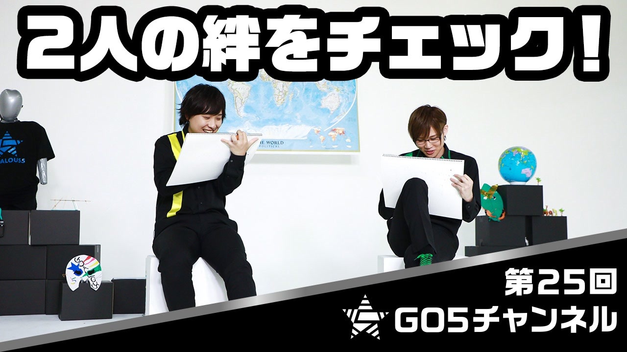 【GOALOUS5 ニコニコ動画支部】<br>GO5チャンネル 第25回<br><br>★テーマソングCD<br>GOALOUS5「GO5!GOALOUS5!」発売中!<br><br>①販売店情報<br>GCRESTORE(ジークレストア):<a href="https://gcrest.store/products/gcp20190001g5" target="_blank" rel="noopener nofollow">https://gcrest.store/products/gcp20190001g5</a><br>アニメイトオンライン:<a href="https://www.animate-onlineshop.jp/pn/pd/1709419/" target="_blank" rel="noopener nofollow">https://www.animate-onlineshop.jp/pn/pd/1709419/</a><br>アニメイト店舗:池袋本店、梅田店、名古屋店<br><br>②特典情報<br>【店舗別購入特典】<br>GCRESTORE(ジークレストア):2L判ブロマイド<br>アニメイトオンライン:L判ブロマイド<br>【封入特典】<br>「声福大作戦!〜集結!GOALOUS5!〜」のイベント先行抽選販売申込券<br>※特典の数には限りがございます。<br><br>③収録内容<br>試聴動画:<a href="https://youtu.be/eShHSFUpflQ" target="_blank" rel="noopener nofollow">https://youtu.be/eShHSFUpflQ</a><br><br>【MV盤】<br>CD(4曲収録)+DVD<br>GCGC-0001/¥2,000(税抜)<br><br>【通常盤】<br>CD(4曲収録)<br>GCGC-0002/¥1,200(税抜)<br><br><CD><br>1.GO5!GOALOUS5!<br>2.Let's GOALOUS5!!<br>3.GO5!GOALOUS5!(Instrumental)<br>4.Let's GOALOUS5!!(Instrumental)<br><br><DVD><br>1.GO5!GOALOUS5! Music Video<br>2.Making<br><br>★「声福大作戦~集結!GOALOUS5!~」の開催が決定!<br>2019年12月29日(日)よみうりランド 日テレらんらんホール<br>GOALOUS5初の大規模な作戦であるイベントです!<br><br>★悪の相談投稿を始めました!<br>下記のフォームに記入、投稿をお願いいたします。<br><a href="http://bit.ly/2Q3wMUh" target="_blank" rel="noopener nofollow">http://bit.ly/2Q3wMUh</a><br><br>★GOALOUS5(ゴーラスファイブ)とは<br>世界声福(征服)を目論む悪の組織が、先遣隊として声を生業にする熊谷健太郎、小松昌平、寺島惇太、仲村宗悟、深町寿成を派遣した。それが「GOALOUS5(ゴーラスファイブ)」だ。5人は声を武器に人々を虜にし、世界を声福(征服)していくための活動を行っていく。<br><br>★GOALOUS5の虜になった者は、公式Twitterのフォローを。<br><br>★GOALOUS5公式Twitter<br>@sir_goalous( <a href="https://twitter.com/sir_goalous" target="_blank" rel="noopener nofollow">https://twitter.com/sir_goalous</a> )<br><br><br>運営:株式会社ジークレスト<br><a href="https://www.gcrest.com/" target="_blank" rel="noopener nofollow">https://www.gcrest.com/</a>