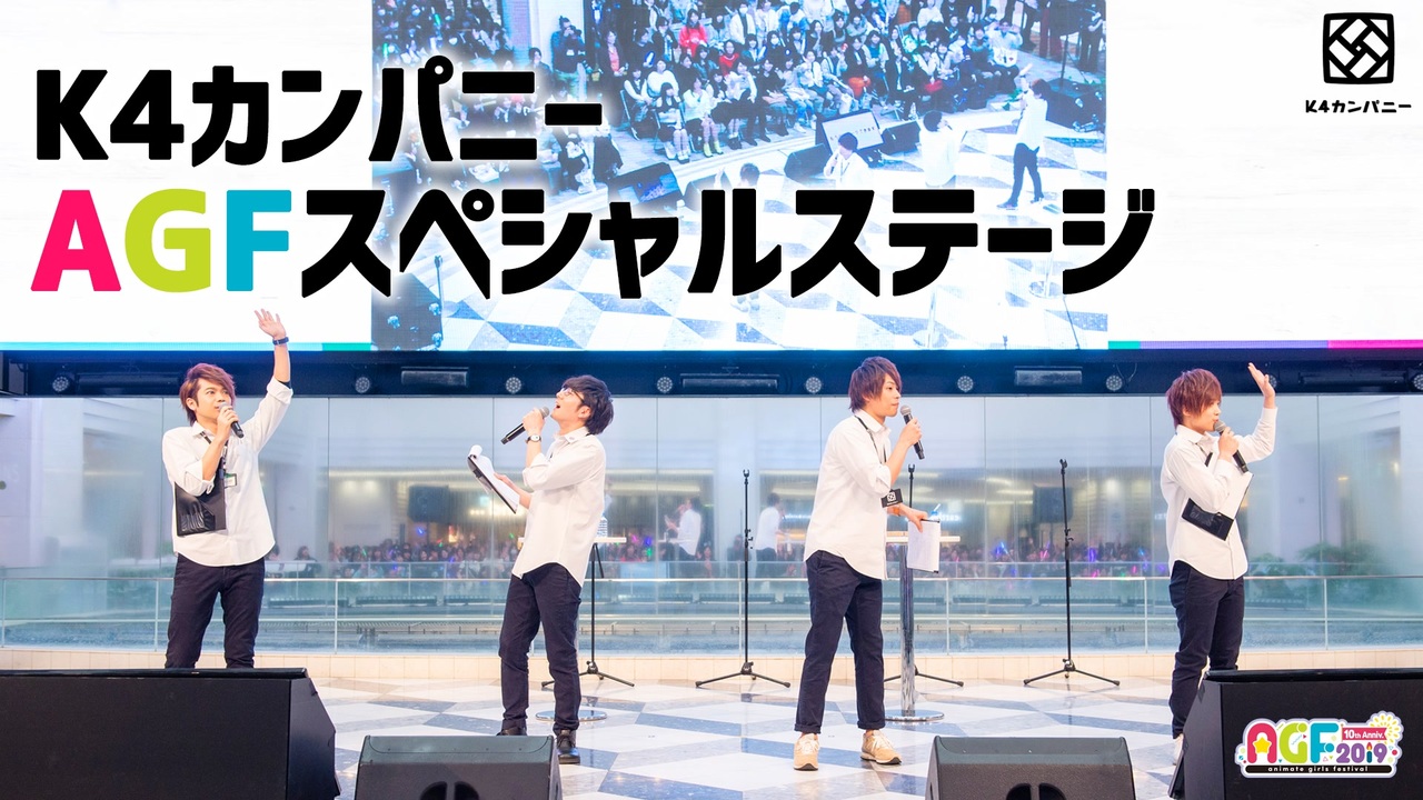 AGF2019 スペシャルステージ!<br>11月10日(日)に開催されたAGF2019噴水ステージでの様子をダイジェストでお届けします!<br><br>■AGF2019<br>K4カンパニーとHANDEAD ANTHEM AGF2019の一部グッズをオンラインショップで受付開始!<br>受付開始:11月18日(月)12:00~<br><br><a href="http://shop.nizista.com/c-fpage?fp=k4company">K4カンパニー社内販売</a><br><br><a href="http://shop.nizista.com/c-fpage?fp=handead_anthem">HANDEAD ANTHEM ONLINE SHOP</a><br><br>■CAFE de K4<br>コラボカフェ第2弾開店中!<br>池袋:11/9(土)〜11/28(木)<br>大阪:12/2(月)〜12/16(月)<br><br>詳細は<a href="http://pripricafe.com/cafe_de_k4/">コチラ</a><br><br>【K4カンパニーとは】<br>K4カンパニーは、創立メンバー4名(小松昌平、益山武明、増元拓也、濱健人)が会社(番組)を立ち上げ、ビッグな大企業にしていく!そんなサクセスストーリー番組です!<br><br>【K4カンパニー公式Twitter】<br>@shain_boshuchu( <a href="https://twitter.com/shain_boshuchu">https://twitter.com/shain_boshuchu </a>)<br>ぜひ入社(フォロー)して社員となり、応援をよろしくお願いします!<br><br>【オリジナルグッズ】<br><a href="http://shop.nizista.com/c-fpage?fp=k4company">社内販売</a><br><br>【関連リンク】<br>ニジ★スタ:<a href="https://nizista.com/">https://nizista.com/</a><br>ニジ★スタ編集部 公式Twitter:<a href="https://twitter.com/Nizista_jp">https://twitter.com/Nizista_jp</a><br>