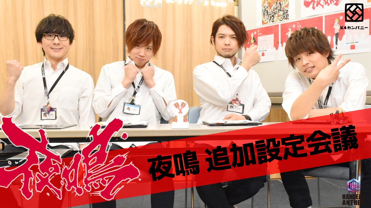 HANDEAD ANTHEM(ハンデッドアンセム)<br>夜鳴『宵宵乱舞』(よいよいらんぶ)発売記念<br>キャラクターの新設定を追加していく!<br><br>▼MV『宵宵乱舞』公開中<br><a href="https://www.youtube.com/watch?v=0e_hkRTxHdw&feature=youtu.be">【MV】夜鳴 / 宵宵乱舞</a><br><br>♢♦♢♦お知らせ♦♢♦♢<br>夜鳴 1st ANTHEM『宵宵乱舞』(よいよいらんぶ)<br>発売日:2020年2月12日<br><br>《収録内容》<br>M01<br>宵宵乱舞 /夜鳴<br>作詞:q*Left 作曲・編曲:八王子P<br>M02<br>宵宵乱舞(inst)<br>M03<br>Drama Track [遅れてきた転入生] /和食 雷我、久重 護、藻津 ノラ、春野 穏人(CV.濱 健人、益山 武明、増元 拓也、小松 昌平)<br>M04<br>Drama Track [交わした約束] /和食 雷我、久重 護、藻津 ノラ、春野 穏人(CV.濱 健人、益山 武明、増元 拓也、小松 昌平)<br><br>↓↓↓公式ショップにて予約受付中!↓↓↓<br><a href="https://shop.nizista.com/c-fpage?fp=handead_anthem">HANDEAD ANTHEM 公式ショップ</a><br><br>【HANDEAD ANTHEMとは】<br>K4カンパニー提供の新企画!<br>4人の男性声優が16キャラ演じる新感覚プロジェクト<br><a href="https://handead.jp/">公式HP</a><br>公式Twitter:<a href="https://twitter.com/handead_anthem">@handead_anthem</a><br><a href="https://www.youtube.com/channel/UCsf-F8FU21Rm1wmxyfMNs7w">Youtubeチャンネル</a><br><br>【K4カンパニーとは】<br>K4カンパニーは、創立メンバー4名(小松昌平、益山武明、増元拓也、濱健人)が会社(番組)を立ち上げ、ビッグな大企業にしていく!そんなサクセスストーリー番組です!<br><br>【K4カンパニー公式Twitter】<br>@shain_boshuchu( <a href="https://twitter.com/shain_boshuchu">https://twitter.com/shain_boshuchu </a>)<br>ぜひ入社(フォロー)して社員となり、応援をよろしくお願いします!<br><br>【オリジナルグッズ】<br><a href="http://shop.nizista.com/c-fpage?fp=k4company">社内販売</a><br><br>【関連リンク】<br>ニジ★スタ:<a href="https://nizista.com/">https://nizista.com/</a><br>ニジ★スタ編集部 公式Twitter:<a href="https://twitter.com/Nizista_jp">https://twitter.com/Nizista_jp</a><br>