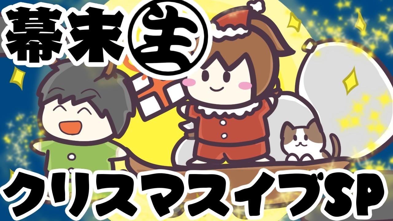 幕末生 2019年12月24日(火)放送分<br><br>1,メリークリスマス!:<a href="#" class="seekTime" data-seekTime="0:00" onclick="seekNicoPlayer('#0:00'); return false;">#0:00</a><br>2,毎年言うぞ:<a href="#" class="seekTime" data-seekTime="1:36" onclick="seekNicoPlayer('#1:36'); return false;">#1:36</a><br>3,作詞坂本ポエム「ロンリネス クリスマス」:<a href="#" class="seekTime" data-seekTime="11:59" onclick="seekNicoPlayer('#11:59'); return false;">#11:59</a><br>4,クリスマス謝罪:<a href="#" class="seekTime" data-seekTime="18:36" onclick="seekNicoPlayer('#18:36'); return false;">#18:36</a><br>5,「JusticeChristmas」実況プレイ:<a href="#" class="seekTime" data-seekTime="30:31" onclick="seekNicoPlayer('#30:31'); return false;">#30:31</a><br>6,「坂本&西郷のモミノキデコレーション」実況プレイ:<a href="#" class="seekTime" data-seekTime="35:35" onclick="seekNicoPlayer('#35:35'); return false;">#35:35</a><br>7,西郷ゲーム「初めてのクリスマス」実況プレイ:<a href="#" class="seekTime" data-seekTime="40:41" onclick="seekNicoPlayer('#40:41'); return false;">#40:41</a><br>8,EDトーク:<a href="#" class="seekTime" data-seekTime="54:04" onclick="seekNicoPlayer('#54:04'); return false;">#54:04</a><br><br><a href="https://www.nicovideo.jp/watch/1583198283" class="watch">watch/1583198283</a>←特別回⑤ 幕ラジ0→<a href="https://www.nicovideo.jp/watch/1584607563" class="watch">watch/1584607563</a><br>幕末ラジオマイリスト:<a href="https://www.nicovideo.jp/mylist/55616469" target="_blank" rel="noopener">mylist/55616469</a><br><br>更新情報(Twitter) → <a href="https://twitter.com/kirizaki_ei" target="_blank" rel="noopener nofollow">https://twitter.com/kirizaki_ei</a><br>ゲーム実況まとめ : <a href="https://www.nicovideo.jp/mylist/8299531" target="_blank" rel="noopener">mylist/8299531</a><br>単発動画まとめ : <a href="https://www.nicovideo.jp/mylist/10539272" target="_blank" rel="noopener">mylist/10539272</a><br>生放送まとめ : <a href="https://www.nicovideo.jp/mylist/53482635" target="_blank" rel="noopener">mylist/53482635</a><br>幕末志士チャンネル : <a href="https://ch.nicovideo.jp/bakumatsu" target="_blank" rel="noopener">ch.nicovideo.jp/bakumatsu</a>