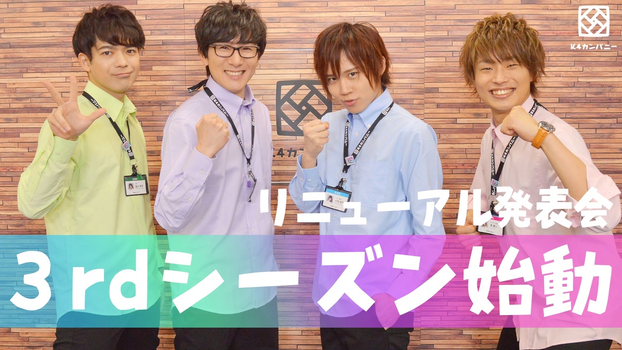社員の皆さんのおかげで今回より3rdシーズンに突入!<br>今回は3rdシーズンでのリニューアル情報をお届けします!<br><br>♢♦♢♦お知らせ♦♢♦♢<br>■「社員ご意見掲示板」復活!<br>ファーストシーズンで行っていた「社員ご意見掲示板」が復活!<br>配信内で定期的に頂いたご意見&ご質問にお答えしていきます!<br><br>▽専用フォームはこちら<br><a href="https://forms.gle/sPMm5oyqqRrfaRYB8" target="_blank" rel="noopener nofollow">https://forms.gle/sPMm5oyqqRrfaRYB8</a><br><br>■生放送決定!<br>4/22(水)21時~<br>K4カンパニー「3rdシーズン戦略発表会~春~」<br>YouTubeLIVEとニコニコ生放送にて生放送が決定!<br>※詳細は随時K4カンパニー公式Twitterにてお知らせいたします<br><br><br>【K4カンパニーとは】<br>K4カンパニーは、創立メンバー4名(小松昌平、益山武明、増元拓也、濱健人)が会社(番組)を立ち上げ、ビッグな大企業にしていく!そんなサクセスストーリー番組です!<br><br>【K4カンパニー公式Twitter】<br>@shain_boshuchu( <a href="https://twitter.com/shain_boshuchu">https://twitter.com/shain_boshuchu </a>)<br>ぜひ入社(フォロー)して社員となり、応援をよろしくお願いします!<br><br>【オリジナルグッズ】<br><a href="http://shop.nizista.com/c-fpage?fp=k4company">社内販売</a><br><br>【関連リンク】<br>ニジ★スタ:<a href="https://nizista.com/">https://nizista.com/</a><br>ニジ★スタ編集部 公式Twitter:<a href="https://twitter.com/Nizista_jp">https://twitter.com/Nizista_jp</a><br>