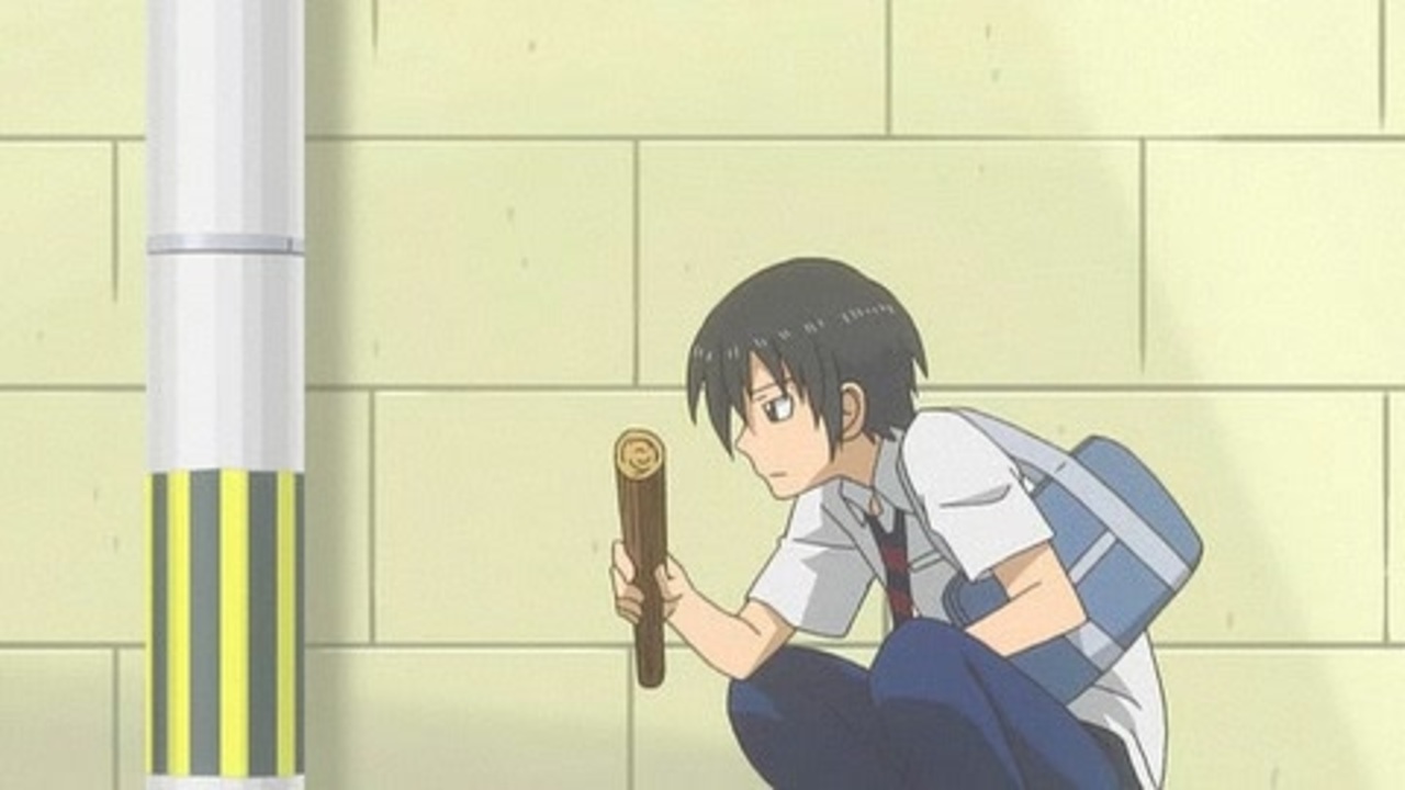学校からの帰り道、落ちていた木の棒を拾い上げたタダクニ。すると突如後ろからヒデノリが襲いかかってきた。攻撃をかわし、木の棒でヒデノリを薙ぎ払うタダクニ。こうして剣士タダクニの最強への道が始まったのである。<br><br>タダクニ:入野自由/ヒデノリ:杉田智和/ヨシタケ:鈴村健一/文学少女:日笠陽子/りんごちゃん:悠木 碧/タダクニ妹:高垣彩陽/モトハル:浪川大輔/唐沢:小野友樹/副会長:安元洋貴/会長:石田 彰/ミツオ:岡本信彦/奈古さん:皆川純子/ヤナギン:小林ゆう/羽原:ゆかな/生島:斎藤千和/ヤスノリ:高梨謙吾<br><br>原作:山内泰延/掲載:「ガンガンONLINE」/発行:スクウェア・エニックス/監督:高松信司/副監督:吉村 愛/キャラクターデザイン・総作画監督:湯本佳典/美術監督:田尻健一/色彩設定:柴田亜紀子/撮影監督:大矢創太/編集:小野寺絵美/音楽:Audio Highs/音響制作:トリニティサウンド/アニメーション制作:サンライズ/製作:「男子高校生の日常」製作委員会<br><br>©山内泰延/スクウェアエニックス・「男子高校生の日常」製作委員会<br><br><a href="https://www.nicovideo.jp/watch/so36711240" class="watch">so36711240</a>←前話|次話→<a href="https://www.nicovideo.jp/watch/so36711242" class="watch">so36711242</a> 第一話→<a href="https://www.nicovideo.jp/watch/so36711240" class="watch">so36711240</a>