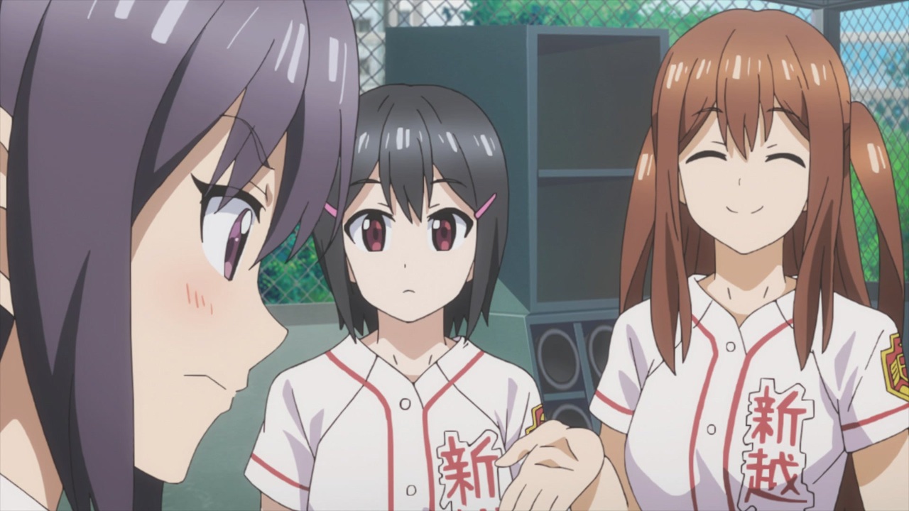 野球部の顧問として藤井杏夏が就任し、さっそく練習試合が組まれることになった。迎える相手は今夏大会の注目チーム・柳川大附属川越だが、先発は2番手投手の大野彩優美。新越谷は3点を先制すると、詠深・珠姫のバッテリーも先頭打者を三振に仕留めてみせる。2回表、新越谷が三者凡退に抑えられた頃、ようやく学校に着いた柳大川越の2年生エース・朝倉智景の姿があった。<br><br>武田詠深:前田佳織里/山崎珠姫:天野聡美/中村希:野口瑠璃子/藤田菫:橋本鞠衣/藤原理沙:永野愛理/川﨑稜:北川里奈/川口息吹:富田美憂/岡田怜:宮本侑芽/大村白菊:本泉莉奈/川口芳乃:白城なお/藤井杏夏:佳村はるか<br><br>原作:マウンテンプクイチ「まんがタイムきららフォワード」連載(芳文社刊)/監督:福島利規/シリーズ構成:待田堂子/キャラクターデザイン:菊田幸一/アニメーション制作:studio A-CAT<br><br>©マウンテンプクイチ・芳文社/新越谷高校女子野球部<br><br><a href="https://www.nicovideo.jp/watch/so36685287" class="watch">so36685287</a>←前話|次話→<a href="https://www.nicovideo.jp/watch/so36769862" class="watch">so36769862</a> 第一話→<a href="https://www.nicovideo.jp/watch/so36609172" class="watch">so36609172</a>
