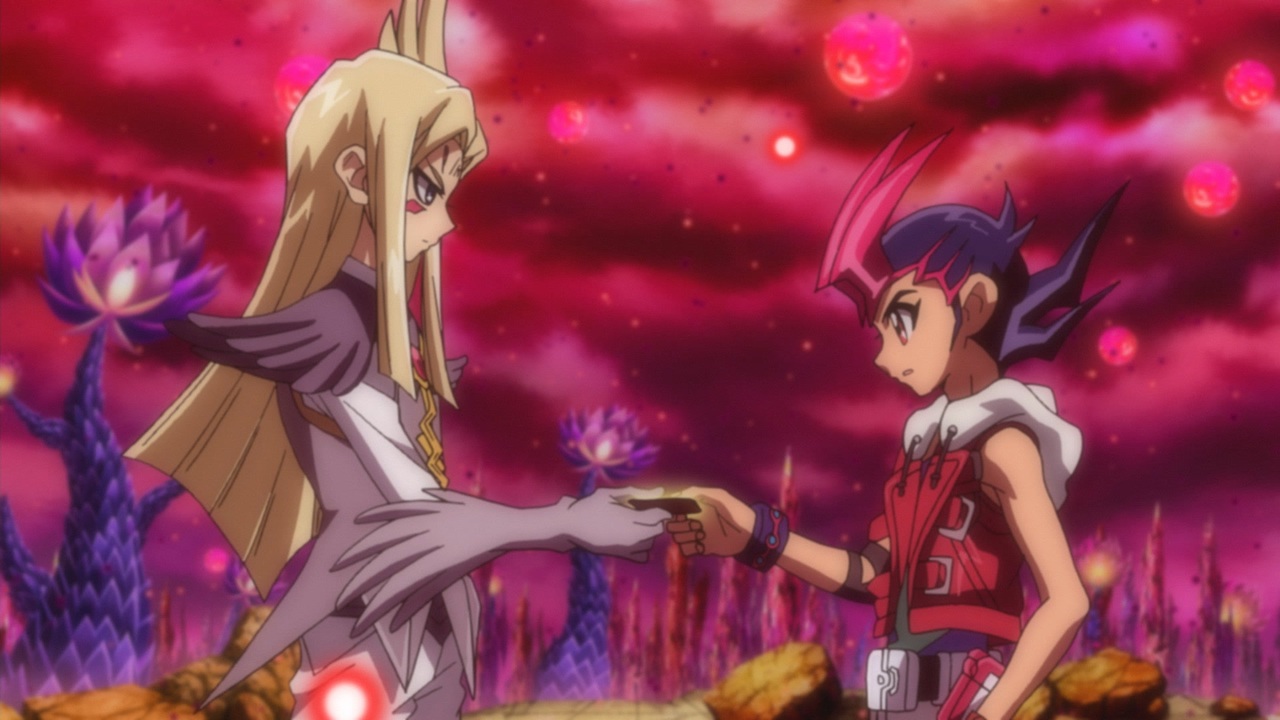 卑劣な戦略でナッシュを苦しめるベクター。怒りに震えるナッシュは、猛攻撃でベクターを窮地へと追い込む!すると、消滅したはずのドン・サウザンドの力が再び蘇り、ベクターの体から完全に独立してしまう…。全てはドン・サウザンドの陰謀通りとなり、自由の身となった体でベクター、そして遊馬までも吸収しようとするのだった。その時、カイトとの激闘を繰り広げたミザエルが現れる!<br><br>九十九遊馬:畠中祐/アストラル:入野自由/神代凌牙:増田俊樹/神代璃緒:潘めぐみ/観月小鳥:小松未可子/天城カイト:内山昂輝<br><br>原作:高橋和希 スタジオ・ダイス (週刊少年ジャンプ)/監督:桑原智/シリーズ構成:吉田伸/デュエル構成:彦久保雅博/メインキャラクターデザイン:高谷浩利/キャラクターデザイン:原田大基/音響監督:松岡裕紀/音楽:Conisch、蓑部雄崇、福田康文、中村和宏/アニメーション制作:ぎゃろっぷ/製作:テレビ東京 NAS<br><br>©高橋和希 スタジオ・ダイス/集英社・テレビ東京・NAS<br><br><a href="https://www.nicovideo.jp/watch/so36852345" class="watch">so36852345</a>←前話|次話→<a href="https://www.nicovideo.jp/watch/so36852347" class="watch">so36852347</a> 第一話→<a href="https://www.nicovideo.jp/watch/so36852424" class="watch">so36852424</a>