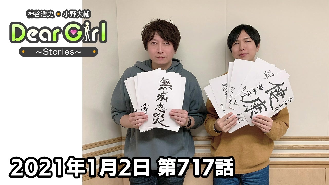 『神谷浩史・小野大輔のDear Girl〜Stories〜』<br><br>声優・神谷浩史、小野大輔がストーリーテラーとなってラジオの前のたった一人のアナタのために様々なストーリーをお届けするラジオプログラム。<br><br>こちらでは番組アーカイブを無料でお聴きいただけます。<br><br>今回は、2021年1月2日に文化放送で放送した第717話「今年って何どし?」をお届けします。<br><br>是非、最後までお聴きください。<br><br>番組では皆さんからのお便りお待ちしています。<br><br><br>・放送日時<br>文化放送 毎週(土)25時〜25時30分<br>ラジオ大阪 毎週(日)23時〜23時30分<br>インターネットサイマルラジオradikoでも聴取可能です。<br><br>・公式Twitter<br><a href="https://twitter.com/uchi_P_" target="_blank" rel="noopener nofollow">https://twitter.com/uchi_P_</a><br><br>・番組メールアドレス<br>dgs@joqr.net<br><br>・番組公式サイト<br><a href="https://pc.animelo.jp/special/deargirl-stories/" target="_blank" rel="noopener nofollow">https://pc.animelo.jp/special/deargirl-stories/</a><br>