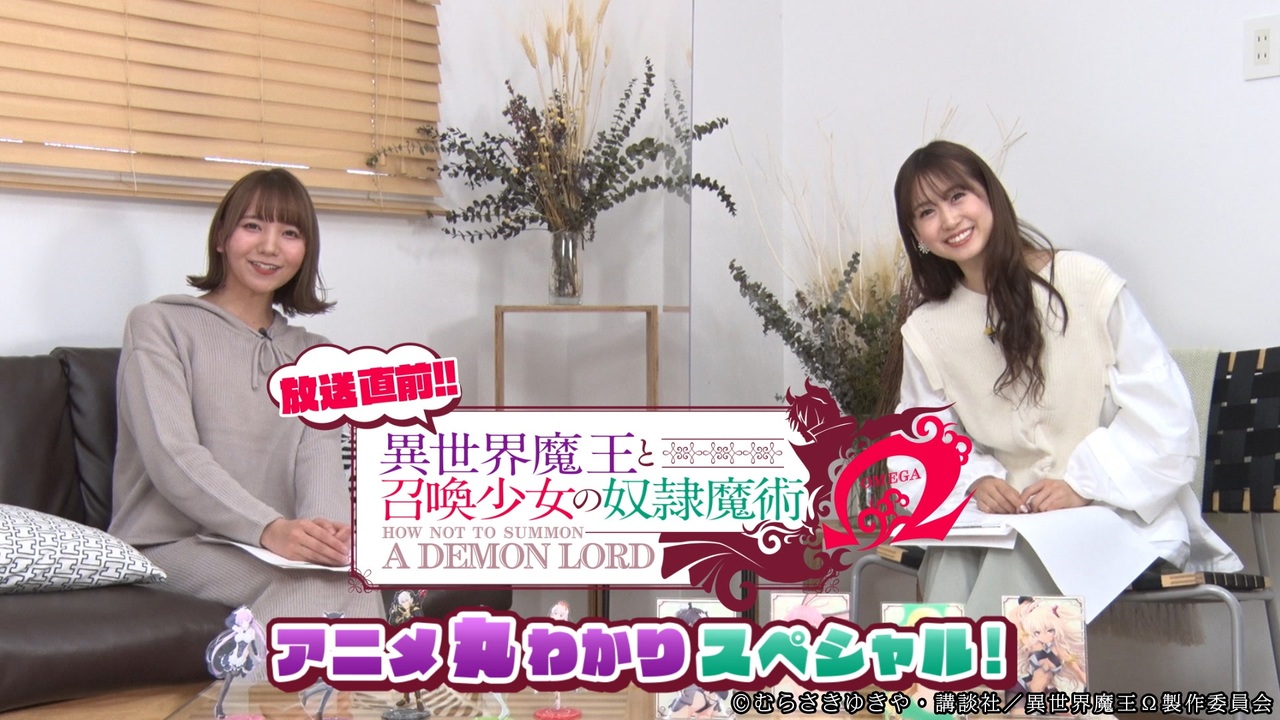 動画一覧は<a href="http://ch.nicovideo.jp/channel/ch2647726" target="_blank">こちら</a><br>第1話 <a href="https://www.nicovideo.jp/watch/so38542987" class="watch">so38542987</a><br><br><br>いよいよ放送開始となるTVアニメ『異世界魔王と召喚少女の奴隷魔術Ω』。第2期の放送を前に、作品の魅力に迫る特別番組が放送決定。芹澤 優(シェラ役)、和氣あず未(レム役)が出演し、第1期の振り返りや第2期の見どころを紹介する。さらに、伊藤美来(ルマキーナ役)もVTR出演。アニメ第2期をより楽しめるトークを繰り広げる。<br><br><u><a href="https://anime.nicovideo.jp/index.html?from=video_watch_anime" target="_blank">無料動画や最新情報・生放送・マンガ・イラストは Nアニメ</a></u><br><strong><u><a href="https://anime.nicovideo.jp/detail/isekaimaou-anime2/index.html?from=video_watch_anime" target="_blank">異世界魔王と召喚少女の奴隷魔術Ω</a></u></strong><br><u><a href="https://anime.nicovideo.jp/period/2021-spring.html?from=video_watch_anime" target="_blank">2021春アニメ</a></u> <u><a href="https://anime.nicovideo.jp/free/index.html?from=video_watch_anime" target="_blank">アニメ無料動画</a></u> <u><a href="https://anime.nicovideo.jp/ranking/view-daily.html?from=video_watch_anime" target="_blank">アニメランキング</a></u><br>
