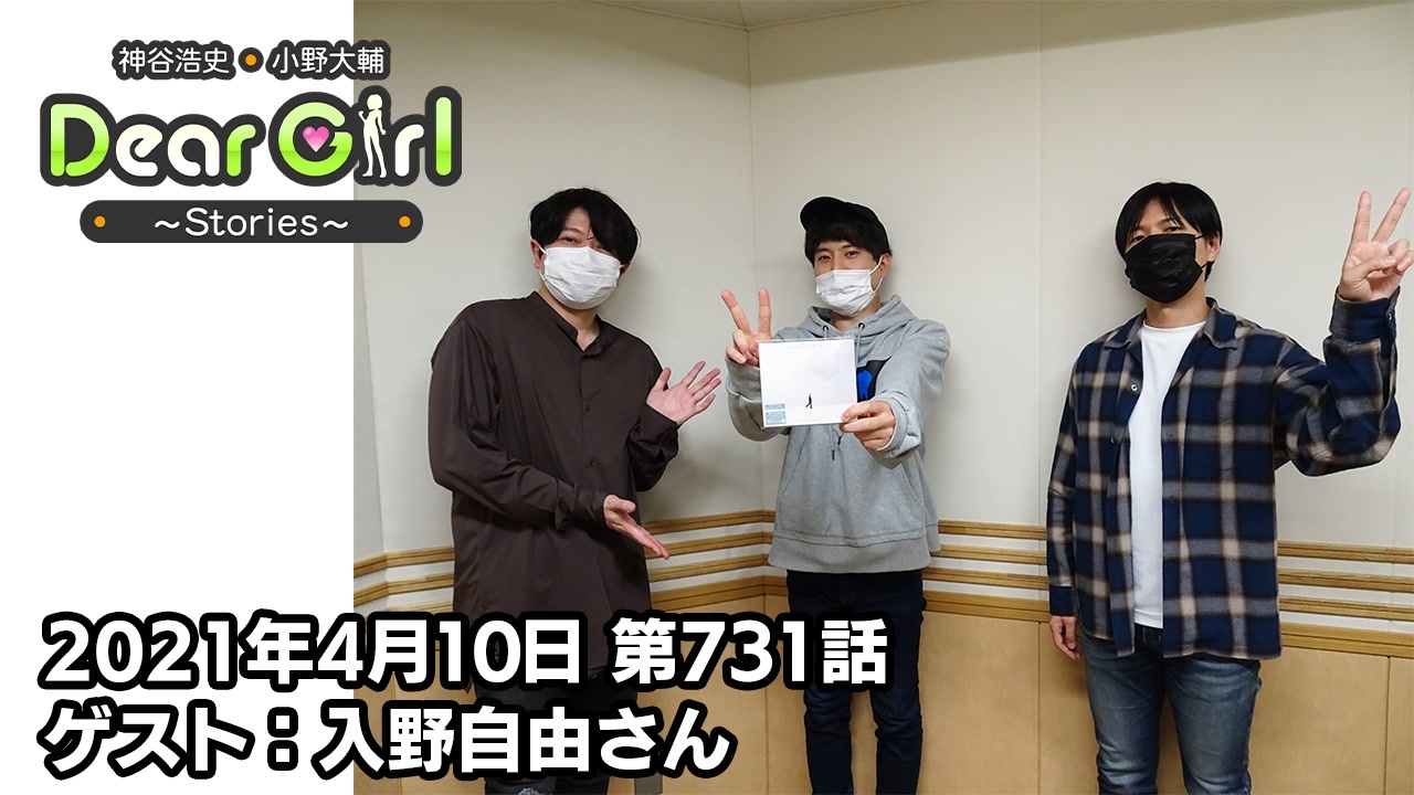 『神谷浩史・小野大輔のDear Girl〜Stories〜』<br><br>声優・神谷浩史、小野大輔がストーリーテラーとなってラジオの前のたった一人のアナタのために様々なストーリーをお届けするラジオプログラム。<br><br>こちらでは番組アーカイブを無料でお聴きいただけます。<br><br>今回は、2021年4月10日に文化放送で放送した第731話「自由くんいい匂いするね」をお届けします。<br>是非、最後までお聴きください。<br><br><br>文化放送「神谷浩史・小野大輔のDear Girl~Stories~」(DGS)発のエアバンド「MASOCHISTIC ONO BAND」が2020年7月5日に行った無観客無料トークライブ「MASOCHISTIC ONO BAND LIVE TOUR 2020 6.9~ロックありがとう!~STAY HOME! STAY ROCK!」のBlu-ray&DVDが発売決定!<br>現在アニメイト店頭、文化放送A&Gショップにて好評発売中です。<br><br>▼ご購入はこちら<br><BD><br><a href="http://bit.ly/3pcJIn7" target="_blank" rel="noopener nofollow">http://bit.ly/3pcJIn7</a><br><DVD><br><a href="http://bit.ly/3d2rXEA" target="_blank" rel="noopener nofollow">http://bit.ly/3d2rXEA</a><br><br><br>また、「神谷浩史・小野大輔のDear Girl~Stories~」テーマソングCD第13弾、「土曜日の靴音」が2021年5月28日(金)発売決定!<br>2021年4月からオンエア中の新OP曲「土曜日の靴音」と新ED曲「WE ARE OPEN」、MASOCHISTIC ONO BAND 改め MASOCHISTIC BONO BAND(MBB)が担当するTVアニメ『ぼのぼの』新主題歌「ぼのぼのロックンロール」のフルサイズバージョンを収録!<br><br>▼ご予約はこちら<br><a href="https://aandg.shop-pro.jp/?pid=158558827" target="_blank" rel="noopener nofollow">https://aandg.shop-pro.jp/?pid=158558827</a><br><br><br><br>番組では皆さんからのお便りお待ちしています。<br><br>・放送日時<br>文化放送 毎週(土)25時〜25時30分<br>ラジオ大阪 毎週(日)23時〜23時30分<br>インターネットサイマルラジオradikoでも聴取可能です。<br><br>・公式Twitter<br><a href="https://twitter.com/uchi_P_" target="_blank" rel="noopener nofollow">https://twitter.com/uchi_P_</a><br><br>・番組メールアドレス<br>dgs@joqr.net<br><br>・番組公式サイト<br><a href="https://pc.animelo.jp/special/deargirl-stories/" target="_blank" rel="noopener nofollow">https://pc.animelo.jp/special/deargirl-stories/</a><br>