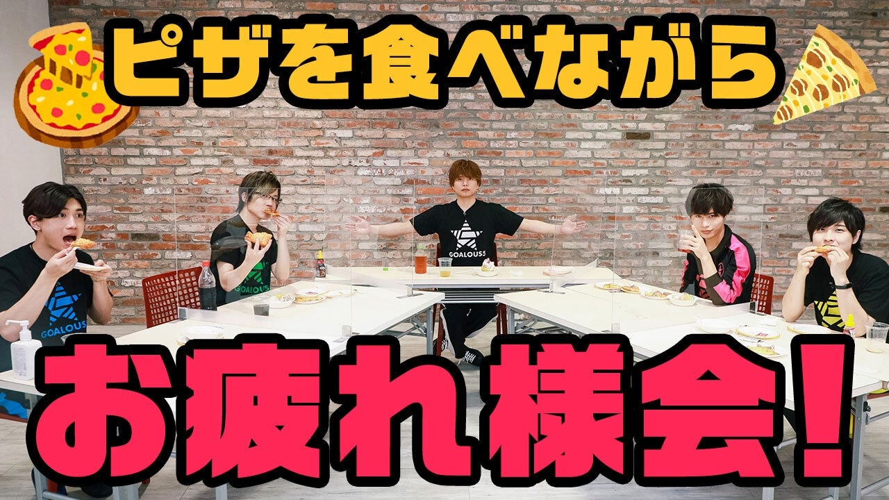 【GOALOUS5 ニコニコ動画支部】<br>恐ろしい食べ物「ピザ」登場!お疲れ様会スタート!2周年特別企画回③(GO5チャンネル 第110回)<br><br><strong>★2周年を記念した新グッズ発売中!</strong><br>GCRESTORE(ジークレストア):<a href="https://gcrest.store/collections/goalous5" target="_blank" rel="noopener nofollow">https://gcrest.store/collections/goalous5</a><br><br>★<strong>MISSION:GO5 ボイスドラマVol.1「学園ヲ声福セヨ!」</strong>発売中!<br>新規楽曲<strong>「HERE WE GO!」</strong>も収録!<br><GCRESTORE(ジークレストア)><br>CD:<a href="https://gcrest.store/products/gcp20210005g5" target="_blank" rel="noopener nofollow">https://gcrest.store/products/gcp20210005g5</a><br>M∞CARD A、B:<a href="https://gcrest.store/products/gcp20210006g5" target="_blank" rel="noopener nofollow">https://gcrest.store/products/gcp20210006g5</a><br><アニメイト(通販含む全店舗)><br>CD:animate-onlineshop.jp/pn/pd/1902125/<br>M∞CARD A:<a href="https://www.animate-onlineshop.jp/pn/pd/1902126/" target="_blank" rel="noopener nofollow">https://www.animate-onlineshop.jp/pn/pd/1902126/</a><br>M∞CARD B:<a href="https://www.animate-onlineshop.jp/pn/pd/1902127/" target="_blank" rel="noopener nofollow">https://www.animate-onlineshop.jp/pn/pd/1902127/</a><br>※店舗別購入特典もあります<br><br>★テーマソングCD第2弾 <strong>GOALOUS5「5 AHEAD!」</strong>11月25日発売!<br>①販売店情報<br><GCRESTORE(ジークレストア)><br>MV盤(CD+DVD):<a href="https://gcrest.store/products/gcp20200038g5" target="_blank" rel="noopener nofollow">https://gcrest.store/products/gcp20200038g5</a><br>M∞CARD A、B:<a href="https://gcrest.store/products/gcp20200034g5" target="_blank" rel="noopener nofollow">https://gcrest.store/products/gcp20200034g5</a><br><アニメイト(通販含む全店舗)><br>MV盤(CD+DVD):<a href="https://www.animate-onlineshop.jp/pn/pd/1859037/" target="_blank" rel="noopener nofollow">https://www.animate-onlineshop.jp/pn/pd/1859037/</a><br>M∞CARD A:<a href="https://www.animate-onlineshop.jp/pn/pd/1859038/" target="_blank" rel="noopener nofollow">https://www.animate-onlineshop.jp/pn/pd/1859038/</a><br>M∞CARD B:<a href="https://www.animate-onlineshop.jp/pn/pd/1859039/" target="_blank" rel="noopener nofollow">https://www.animate-onlineshop.jp/pn/pd/1859039/</a><br>※店舗別特典もあります<br><br>②収録内容<br>試聴動画:<a href="https://youtu.be/3r6M5AywavQ" target="_blank" rel="noopener nofollow">https://youtu.be/3r6M5AywavQ</a><br>【MV盤】<br><収録曲><br>M01:5 AHEAD!<br>M02:RosyBeat<br>M03:5 AHEAD!(Instrumental)<br>M04:RosyBeat(Instrumental)<br><DVD映像収録内容><br>01:5 AHEAD! Music Video<br>02:5 AHEAD! Music Videoメイキング映像(MV盤映像特典)<br>03:Trailer<br>GCGC-0003/¥2,000(税抜)【M∞CARD A】<br><収録曲><br>M01:5 AHEAD!<br>M02:RosyBeat<br>M03:5 AHEAD!(Instrumental)<br>M04:RosyBeat(Instrumental)<br>+「RosyBeat」各メンバーのソロセリフVer.<br><収録映像><br>5 AHEAD! Music Video<br>GCGC-0004/¥1,700(税抜)【M∞CARD B】<br><収録曲><br>M01:5 AHEAD!<br>M02:RosyBeat<br>M03:5 AHEAD!(Instrumental)<br>M04:RosyBeat(Instrumental)<br><br>③購入特典<br><MV盤(CD+DVD)店舗別購入特典><br>GCRESTORE(ジークレストア):2L判ブロマイド<br>アニメイトオンライン:L判ブロマイド<br><M∞CARD A、B 店舗共通購入特典><br>複製直筆コメントが入ったM∞CARDが飾れるスタンドPOP 1種(ランダム全5種)<br>※ジークレストア、アニメイト共通の特典となります<br>※M∞CARD A、B共通で全5種となります<br><br>★悪の相談募集中<br>下記のフォームに記入、投稿をお願いいたします。<br><a href="http://bit.ly/2Q3wMUh" target="_blank" rel="noopener nofollow">http://bit.ly/2Q3wMUh</a><br><br>★GOALOUS5(ゴーラスファイブ)とは<br>世界声福(征服)を目論む悪の組織が、先遣隊として声を生業にする熊谷健太郎、小松昌平、寺島惇太、仲村宗悟、深町寿成を派遣した。それが「GOALOUS5(ゴーラスファイブ)」だ。5人は声を武器に人々を虜にし、世界を声福(征服)していくための活動を行っていく。<br><br>★GOALOUS5の虜になった者は、公式Twitterのフォローを。<br><br>★GOALOUS5公式Twitter<br>@sir_goalous( <a href="https://twitter.com/sir_goalous" target="_blank" rel="noopener nofollow">https://twitter.com/sir_goalous</a> )<br><br><br>運営:株式会社ジークレスト<br><a href="https://www.gcrest.com/" target="_blank" rel="noopener nofollow">https://www.gcrest.com/</a>