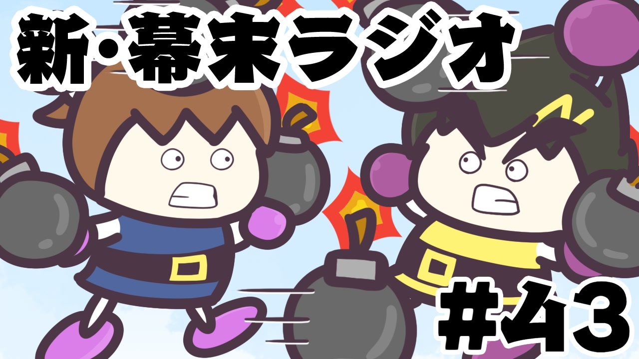 新・幕末ラジオ 2021年6月19日(土)放送分<br><br>1,クハンダの話:<a href="#" class="seekTime" data-seekTime="0:01" onclick="seekNicoPlayer('#0:01'); return false;">#0:01</a><br>2,坂風鈴 お耳の恋人 一日中:<a href="#" class="seekTime" data-seekTime="6:36" onclick="seekNicoPlayer('#6:36'); return false;">#6:36</a><br>3,放送次第:<a href="#" class="seekTime" data-seekTime="20:31" onclick="seekNicoPlayer('#20:31'); return false;">#20:31</a><br>4,中岡コーナー「サカツベお気に入りシーン集」:<a href="#" class="seekTime" data-seekTime="22:34" onclick="seekNicoPlayer('#22:34'); return false;">#22:34</a><br>5,ボンバーマン中岡杯「スーパーボンバーマンRオンライン」:<a href="#" class="seekTime" data-seekTime="40:30" onclick="seekNicoPlayer('#40:30'); return false;">#40:30</a><br>6,坂本1人vs中岡軍63人:<a href="#" class="seekTime" data-seekTime="60:00" onclick="seekNicoPlayer('#60:00'); return false;">#60:00</a><br>7,坂本軍vs中岡軍:<a href="#" class="seekTime" data-seekTime="80:37" onclick="seekNicoPlayer('#80:37'); return false;">#80:37</a><br>8,坂本1人vs中岡1人:<a href="#" class="seekTime" data-seekTime="90:37" onclick="seekNicoPlayer('#90:37'); return false;">#90:37</a><br>9,坂本軍vs中岡軍:<a href="#" class="seekTime" data-seekTime="103:24" onclick="seekNicoPlayer('#103:24'); return false;">#103:24</a><br>10,坂本軍vs中岡軍(バグエンド):<a href="#" class="seekTime" data-seekTime="133:10" onclick="seekNicoPlayer('#133:10'); return false;">#133:10</a><br><br><a href="https://www.nicovideo.jp/watch/so39237675" class="watch">so39237675</a>←第42回 第44回→<a href="https://www.nicovideo.jp/watch/so39308911" class="watch">so39308911</a><br>(会員限定)新幕末ラジオマイリスト:<a href="https://www.nicovideo.jp/mylist/78814077" target="_blank" rel="noopener">mylist/78814077</a><br>(会員限定)旧幕末ラジオマイリスト:<a href="https://www.nicovideo.jp/mylist/55616469" target="_blank" rel="noopener">mylist/55616469</a><br><br>更新情報(Twitter) → <a href="https://twitter.com/kirizaki_ei" target="_blank" rel="noopener nofollow">https://twitter.com/kirizaki_ei</a><br>ゲーム実況まとめ : <a href="https://www.nicovideo.jp/mylist/8299531" target="_blank" rel="noopener">mylist/8299531</a><br>単発動画まとめ : <a href="https://www.nicovideo.jp/mylist/10539272" target="_blank" rel="noopener">mylist/10539272</a><br>生放送まとめ : <a href="https://www.nicovideo.jp/mylist/53482635" target="_blank" rel="noopener">mylist/53482635</a><br>幕末志士チャンネル : <a href="https://ch.nicovideo.jp/bakumatsu" target="_blank" rel="noopener">ch.nicovideo.jp/bakumatsu</a><br>