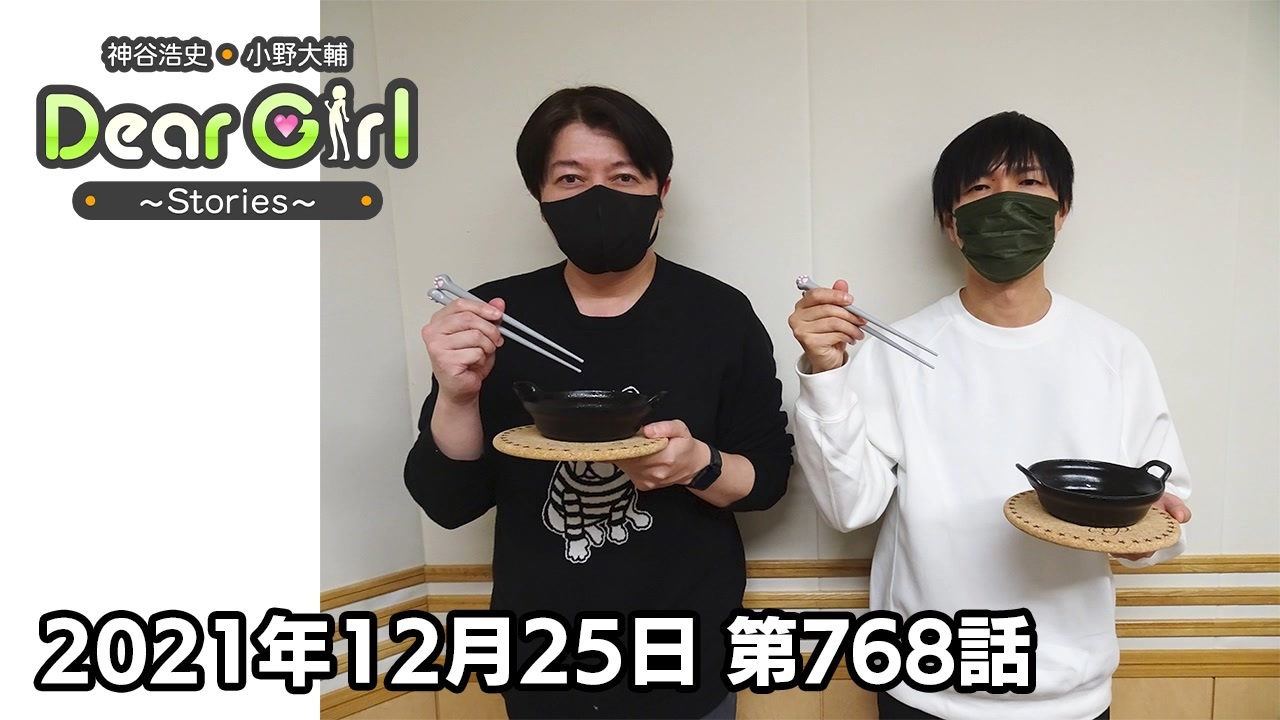 『神谷浩史・小野大輔のDear Girl〜Stories〜』<br>声優・神谷浩史、小野大輔がストーリーテラーとなってラジオの前のたった一人のアナタのために様々なストーリーをお届けするラジオプログラム。<br><br>こちらでは番組アーカイブを無料でお聴きいただけます。<br>今回は、2021年12月25日に文化放送で放送した第768話「今年のDGS的漢字一文字は『寒』」をお届けします。是非、最後までお聴きください。<br><br><br>▼「神谷浩史・小野大輔のDear Girl~Stories~」のイベント「DGS CAMP」の開催が決定しました!<br>「DGS CAMP」と題し、スタジオから外に飛び出しリスナーの住む街に行ってお届けする"アウトドアラジオ"がテーマの地方イベントです。<br>日程と会場は、2022年2月26日(土)・27日(日)Zepp Sapporo、2022年3月5日(土)・6日(日)Zepp Fukuokaとなります。<br>トークが中心のイベントとなりますが、ライブパートも予定しています。<br><br>こちらのイベントのチケットは1月10日(月・祝)23:59までanimelo mixとニコニコチャンネル『DGSチャンネル』にて最速先行予約を受け付け中です。<br><br>【animelo mix会員限定チケット最速先行予約】<br>受付期間:2021年12月20日(月)12:00~2022年1月10日(月・祝)23:59<br>URL:<a href="https://r.animelo.jp/?id=GqdQQ8fY" target="_blank" rel="noopener nofollow">https://r.animelo.jp/?id=GqdQQ8fY</a><br>※申し込みはスマートフォン(Android、iPhone)からのみになります。<br><br>【ニコニコチャンネル『DGSチャンネル』会員限定チケット最速先行予約】<br>受付期間:2021年12月20日(月)12:00~2022年1月10日(月・祝)23:59<br>URL:<a href="https://ch.nicovideo.jp/dgs" target="_blank" rel="noopener nofollow">https://ch.nicovideo.jp/dgs</a><br>※スマートフォン(Android、iPhone)、PCから申し込み可能です。<br><br><br><br>番組では皆さんからのお便りお待ちしています。<br><br>・放送日時<br>文化放送 毎週(土)25時〜25時30分<br>ラジオ大阪 毎週(日)23時〜23時30分<br>インターネットサイマルラジオradikoでも聴取可能です。<br><br>・公式Twitter<br><a href="https://twitter.com/uchi_P_" target="_blank" rel="noopener nofollow">https://twitter.com/uchi_P_</a><br><br>・番組メールアドレス<br>dgs@joqr.net<br><br>・番組公式サイト<br><a href="https://pc.animelo.jp/special/deargirl-stories/" target="_blank" rel="noopener nofollow">https://pc.animelo.jp/special/deargirl-stories/</a><br>
