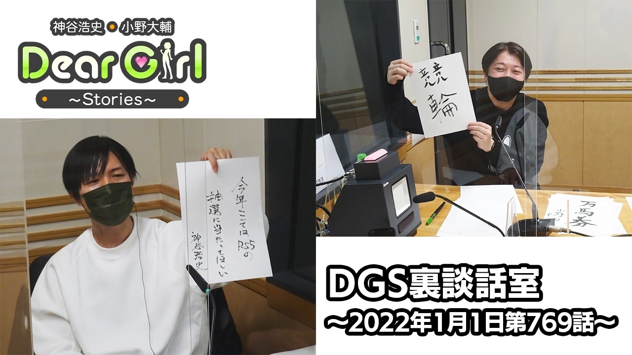 『神谷浩史・小野大輔のDear Girl〜Stories〜』<br>声優・神谷浩史、小野大輔がストーリーテラーとなってラジオの前のたった一人のアナタのために様々なストーリーをお届けするラジオプログラム。<br><br>こちらではDGS本編には収録されていない裏の談話室をお届けします。<br><br><br>▼「神谷浩史・小野大輔のDear Girl~Stories~」のイベント「DGS CAMP」の開催が決定しました!<br>「DGS CAMP」と題し、スタジオから外に飛び出しリスナーの住む街に行ってお届けする"アウトドアラジオ"がテーマの地方イベントです。<br>日程と会場は、2022年2月26日(土)・27日(日)Zepp Sapporo、2022年3月5日(土)・6日(日)Zepp Fukuokaとなります。<br>トークが中心のイベントとなりますが、ライブパートも予定しています。<br><br>こちらのイベントのチケットは1月10日(月・祝)23:59までanimelo mixとニコニコチャンネル『DGSチャンネル』にて最速先行予約を受け付け中です。<br><br>【animelo mix会員限定チケット最速先行予約】<br>受付期間:2021年12月20日(月)12:00~2022年1月10日(月・祝)23:59<br>URL:<a href="https://r.animelo.jp/?id=GqdQQ8fY" target="_blank" rel="noopener nofollow">https://r.animelo.jp/?id=GqdQQ8fY</a><br>※申し込みはスマートフォン(Android、iPhone)からのみになります。<br><br>【ニコニコチャンネル『DGSチャンネル』会員限定チケット最速先行予約】<br>受付期間:2021年12月20日(月)12:00~2022年1月10日(月・祝)23:59<br>URL:<a href="https://ch.nicovideo.jp/dgs" target="_blank" rel="noopener nofollow">https://ch.nicovideo.jp/dgs</a><br>※スマートフォン(Android、iPhone)、PCから申し込み可能です。<br><br><br><br>・放送日時<br>文化放送 毎週(土)25時〜25時30分<br>ラジオ大阪 毎週(日)23時〜23時30分<br>インターネットサイマルラジオradikoでも聴取可能です。<br><br>・公式Twitter<br><a href="https://twitter.com/uchi_P_" target="_blank" rel="noopener nofollow">https://twitter.com/uchi_P_</a><br><br>・番組メールアドレス<br>dgs@joqr.net<br><br>・番組公式サイト<br><a href="https://pc.animelo.jp/special/deargirl-stories/" target="_blank" rel="noopener nofollow">https://pc.animelo.jp/special/deargirl-stories/</a><br>