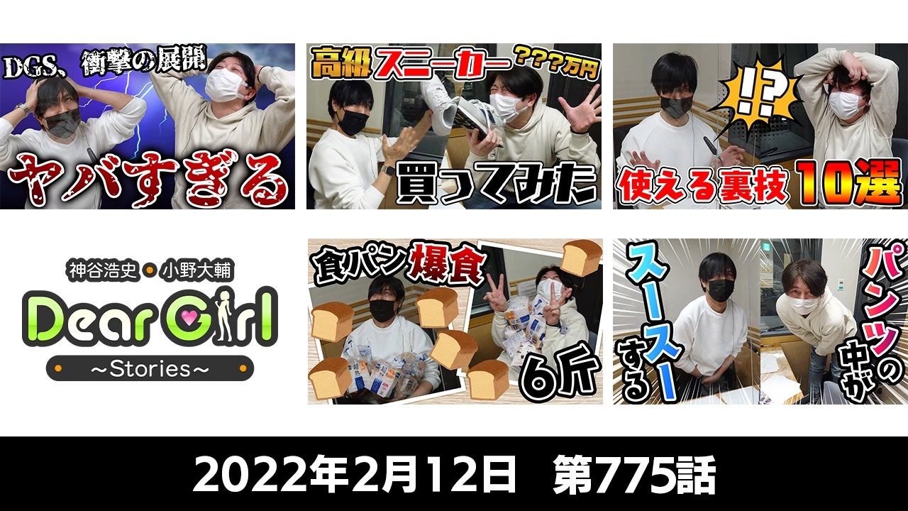 『神谷浩史・小野大輔のDear Girl〜Stories〜』<br>声優・神谷浩史、小野大輔がストーリーテラーとなってラジオの前のたった一人のアナタのために様々なストーリーをお届けするラジオプログラム。<br><br>こちらでは番組アーカイブを無料でお聴きいただけます。<br>今回は、2022年2月12日に文化放送で放送した第775話「今週来週、高垣弟頑張るの巻!」をお届けします。是非、最後までお聴きください。<br><br><br>▼「神谷浩史・小野大輔のDear Girl~Stories~」のイベント「DGS CAMP」の開催が決定しました!<br>「DGS CAMP」と題し、スタジオから外に飛び出しリスナーの住む街に行ってお届けする"アウトドアラジオ"がテーマの地方イベントです。<br>日程と会場は、2022年2月26日(土)・27日(日)Zepp Sapporo、2022年3月5日(土)・6日(日)Zepp Fukuokaとなります。<br>トークが中心のイベントとなりますが、ライブパートも予定しています。<br><br>「DGS CAMP」3月6日(日)福岡公演 ニコニコ生放送にて有料生配信実施決定!<br>視聴チケット発売中!<br><a href="https://live.nicovideo.jp/watch/lv335654387" target="_blank" rel="noopener nofollow">https://live.nicovideo.jp/watch/lv335654387</a><br><br>「DGS CAMP」公式サイト<br><a href="https://www.joqrextend.co.jp/dgscamptour/" target="_blank" rel="noopener nofollow">https://www.joqrextend.co.jp/dgscamptour/</a><br>「DGS CAMP」グッズのご購入はこちら<br><a href="https://aandg.shop-pro.jp/?mode=cate&cbid=564941&csid=0&sort=n" target="_blank" rel="noopener nofollow">https://aandg.shop-pro.jp/?mode=cate&cbid=564941&csid=0&sort=n</a><br><br><br>番組では皆さんからのお便りお待ちしています。<br><br>・放送日時<br>文化放送 毎週(土)25時〜25時30分<br>ラジオ大阪 毎週(日)23時〜23時30分<br>インターネットサイマルラジオradikoでも聴取可能です。<br><br>・公式Twitter<br><a href="https://twitter.com/uchi_P_" target="_blank" rel="noopener nofollow">https://twitter.com/uchi_P_</a><br><br>・番組メールアドレス<br>dgs@joqr.net<br><br>・番組公式サイト<br><a href="https://pc.animelo.jp/special/deargirl-stories/" target="_blank" rel="noopener nofollow">https://pc.animelo.jp/special/deargirl-stories/</a><br>