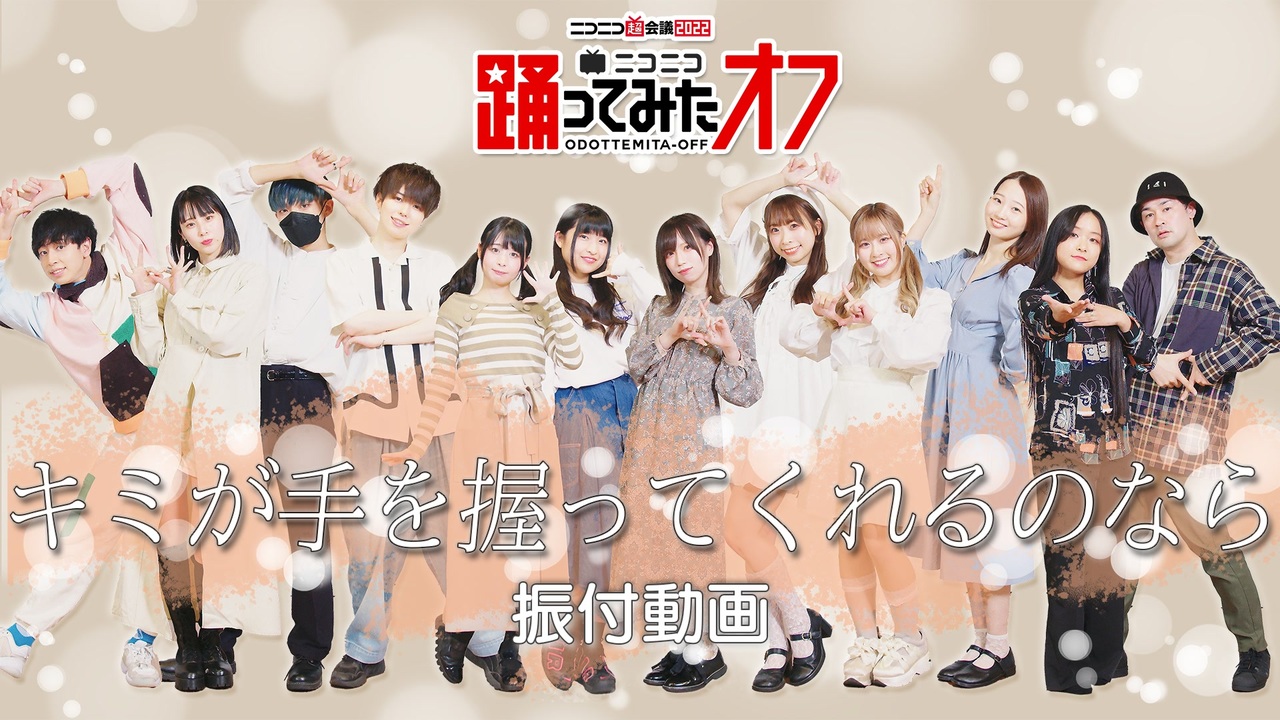 振付師12人が集結!ニコニコ超会議2022「超踊ってみたオフ」で一つの作品を作成します。<br><br>《変わらない大切なもの》<br>みんなが好きなもの、それはやっぱり踊ってみた!<br>踊ってみたが大好きなんだ! ねぇ、みんなで踊ろうよ!<br><br>「キミが手を握ってくれるのなら / 成宮 亮feat.初音ミク」<a href="https://www.nicovideo.jp/watch/sm39478105" class="watch">sm39478105</a><br>Music & lyrics:成宮 亮 (@naryo_1008)<br><br><br><振り付け><br>足太ぺんた <a href="https://twitter.com/asibuto_penta" target="_blank" rel="noopener nofollow">https://twitter.com/asibuto_penta</a><br>りりり <a href="https://twitter.com/ri_ri_ri_5" target="_blank" rel="noopener nofollow">https://twitter.com/ri_ri_ri_5</a><br>ぶっきー <a href="https://twitter.com/bookie_nico25" target="_blank" rel="noopener nofollow">https://twitter.com/bookie_nico25</a><br><br>まなこ <a href="https://twitter.com/xxxskri" target="_blank" rel="noopener nofollow">https://twitter.com/xxxskri</a><br>ネス (RAB(リアルアキバボーイズ)) <a href="https://twitter.com/RAB_nesu45" target="_blank" rel="noopener nofollow">https://twitter.com/RAB_nesu45</a><br>ありく <a href="https://twitter.com/ariku_219" target="_blank" rel="noopener nofollow">https://twitter.com/ariku_219</a><br><br>鷹文 <a href="https://twitter.com/takafumi_t1014" target="_blank" rel="noopener nofollow">https://twitter.com/takafumi_t1014</a><br>ぽるし <a href="https://twitter.com/cnToppo" target="_blank" rel="noopener nofollow">https://twitter.com/cnToppo</a><br>まりやん <a href="https://twitter.com/mari_yan00" target="_blank" rel="noopener nofollow">https://twitter.com/mari_yan00</a><br><br>めーとる <a href="https://twitter.com/1m55cm_" target="_blank" rel="noopener nofollow">https://twitter.com/1m55cm_</a><br>わた <a href="https://twitter.com/wata0w0" target="_blank" rel="noopener nofollow">https://twitter.com/wata0w0</a><br>まぁり <a href="https://twitter.com/mali_mali_15" target="_blank" rel="noopener nofollow">https://twitter.com/mali_mali_15</a><br><br><br>撮影・編集:Johnny.<br><br>====================<br><br>■【企画①】『みんなで踊ってみた動画』をつくろう!<br><br>踊オフ参加者の動画をぎゅぎゅっと1本にまとめた動画を4月30日(土)に投稿予定!<br>下記フォームからテーマソングを踊った動画をお送りください。<br>個人投稿はしないけどこちらの動画には参加したいという方も大歓迎!!<br><br>〝踊ってみた〟が大好きなみんなで、2022年一の大作を作り上げよう!<br><br>送信はこちら!→<strong> <a href="https://secure.nicovideo.jp/form/entry/odooff2022" target="_blank" rel="noopener nofollow">https://secure.nicovideo.jp/form/entry/odooff2022</a></strong><br>【フォーム送信締切】<u>4月26日(火)23:59</u><br><br>※お送りいただいた映像に不備があった場合や、動画の構成の都合上、すべての動画を使用出来ない可能性がございますので予めご了承ください。<br>※「サビだけ」などフル尺以外のデータでも構いませんが、箇所が多いほど使用する可能性が高くなります。<br>※期間中、何作品でも投稿が可能です。<br><br><br>■【企画②】『幕張でみんなで踊ってみた』開催!<br><br>テーマソングを幕張メッセで一緒に踊ろう!<br>振付師の皆さんからのレッスンもあります!<br>幕張でみんなで踊ってみたの様子を撮影し、後日動画も公開します<br>【開催日】<u>4月30日(土)14:50〜16:20</u> 超会議2022 超踊ってみたブースにて!<br><br><br>■【企画③】『一斉投稿』祭り開催!<br><br>テーマソング『キミが手を握ってくれるのなら / 成宮 亮feat.初音ミク』の踊ってみた動画を<br>【<u>4月23日(土)19:00</u>】に一斉投稿して、ネット上に集合しよう!<br>ニコニコ動画・YouTube・Twitter等、投稿先はどこでも可!<br>動画は「 #超会議2022 」「 #超踊ってみたオフ 」のハッシュタグ付きでツイートしてね!<br><br><br>====================<br><br>■踊ってみたNEXTで振り付けレッスン開催<br>振り付けを担当した振付師のみんなが、生放送で直接振り付けをレッスンします!<br>動画から覚えるのが難しい!細かい部分が気になる!という方は要チェック!<br><br>番組ページ:<a href="https://live.nicovideo.jp/watch/lv336044671" target="_blank" rel="noopener nofollow">https://live.nicovideo.jp/watch/lv336044671</a><br>踊ってみた公式番組「踊ってみた THE NEXT WORLD」第19回<br>放送日時:<u>4月13日(水)19:00〜</u><br><br>■踊ってみた公式Twitter<br>踊ってみたPR @odottemita_PR<br><br><br>■振付反転動画はこちら ⇒ <a href="https://www.nicovideo.jp/watch/so40251894" target="_blank" rel="noopener nofollow">https://www.nicovideo.jp/watch/so40251894</a><br><br><br><ニコニコ超会議2022><br>公式Webサイト <a href="https://chokaigi.jp/" target="_blank" rel="noopener nofollow">https://chokaigi.jp/</a><br>公式Twitterアカウント <a href="https://twitter.com/chokaigi_PR" target="_blank" rel="noopener nofollow">https://twitter.com/chokaigi_PR</a><br>