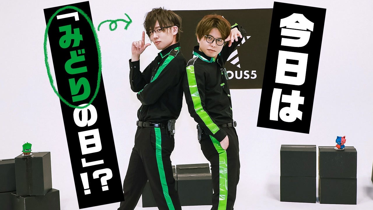 【GOALOUS5 ニコニコ動画支部】<br>真のグリーンはどっちだ?グリーンクイズ!(GO5チャンネル 第154回)<br><br><strong>★2022年7月3日(日)「声福大作戦~LIVE & READING~」開催決定!</strong><br>一次先行抽選受付中!:<a href="https://eplus.jp/sf/detail/3625740001" target="_blank" rel="noopener nofollow">https://eplus.jp/sf/detail/3625740001</a><br><br><strong>★テーマソングCD第3弾「MIRAGE SHOW」発売中!</strong><br>①販売店情報<br><GCRESTORE(ジークレストア)><br><a href="https://gcrest.store/collections/goalous5" target="_blank" rel="noopener nofollow">https://gcrest.store/collections/goalous5</a><br><アニメイト(通販含む全店舗)><br><a href="https://www.animate-onlineshop.jp/animetitle/?aid=14736" target="_blank" rel="noopener nofollow">https://www.animate-onlineshop.jp/animetitle/?aid=14736</a><br>※店舗別購入特典もあります<br><br>②収録内容<br>【MV盤(CD +DVD)】<br><収録曲><br>M01:MIRAGE SHOW<br>M02:Dreaming Time<br>M03:MIRAGE SHOW(Instrumental)<br>M04:Dreaming Time(Instrumental)<br><DVD映像収録内容><br>01:MIRAGE SHOW Music Video<br>02:MIRAGE SHOW Music Videoメイキング映像(MV盤映像特典)<br>03:Trailer<br>GCGC-0011/¥2,200円(税込)<br><br>【M∞CARD A】<br><収録曲><br>M01:MIRAGE SHOW<br>M02:Dreaming Time<br>M03:MIRAGE SHOW(Instrumental)<br>M04:Dreaming Time(Instrumental)<br><収録映像><br>MIRAGE SHOW Music Video<br>GCGC-0012/¥1,870円(税込)<br><br>【M∞CARD B】<br><収録曲><br>M01:MIRAGE SHOW<br>M02:Dreaming Time<br>M03:MIRAGE SHOW(Instrumental)<br>GCGC-0013/¥1,320円(税込)<br><br>③購入特典<br><MV盤、M∞CARD共通><br>MVにも登場する予告状デザインを使用した<br>「予告状風ボイスカード」が1種(ランダム、全5種)付属。<br>ボイスカード収録内容の詳細は後日発表!<br>※MV盤、M∞CARDともに音声の収録されたカードが付属します。<br><br>④店舗別購入特典<br><MV盤、M∞CARD共通><br>GCRESTORE(ジークレストア):2L判ブロマイド<br>アニメイトオンライン:L判ブロマイド<br><br><strong>★「声福大作戦〜2019&2020〜」Blu-ray&DVD 発売中!</strong><br>①販売店情報<br><GCRESTORE(ジークレストア)><br><a href="https://gcrest.store/collections/goalous5" target="_blank" rel="noopener nofollow">https://gcrest.store/collections/goalous5</a><br><アニメイト(通販含む全店舗)><br><a href="https://www.animate-onlineshop.jp/animetitle/?aid=14736" target="_blank" rel="noopener nofollow">https://www.animate-onlineshop.jp/animetitle/?aid=14736</a><br>※店舗別購入特典もあります<br><br>②収録内容<br>【Blu-ray&DVD共通】<br>▼本編映像<br>・「声福大作戦〜集結!GOALOUS5!〜」(2019年オフラインイベント)<br>・「声福大作戦〜新作戦!虜にさせるのだ!〜」(2020年オンラインイベント)<br><br>▼映像特典<br>・「声福大作戦〜集結!GOALOUS5!〜」悪の朗読(夜の部)<br><br>【Blu-ray限定音声特典】<br>「声福大作戦〜集結!GOALOUS5!〜」オーディオコメンタリー <br><br>【Blu-ray】GCGB-0001/¥13,200円(税込)<br> 【DVD】GCGD-0001/¥10,780円(税込)<br><br>③店舗別購入特典<br><Blu-ray、DVD共通><br>GCRESTORE(ジークレストア):ポストカード<br>アニメイトオンライン:ポストカード<br><br>★悪の相談募集中<br>下記のフォームに記入、投稿をお願いいたします。<br><a href="http://bit.ly/2Q3wMUh" target="_blank" rel="noopener nofollow">http://bit.ly/2Q3wMUh</a><br><br>★GOALOUS5(ゴーラスファイブ)とは<br>世界声福(征服)を目論む悪の組織が、先遣隊として声を生業にする熊谷健太郎、小松昌平、寺島惇太、仲村宗悟、深町寿成を派遣した。それが「GOALOUS5(ゴーラスファイブ)」だ。5人は声を武器に人々を虜にし、世界を声福(征服)していくための活動を行っていく。<br><br>★GOALOUS5の虜になった者は、公式Twitterのフォローを。<br><br>★GOALOUS5公式Twitter<br>@sir_goalous( <a href="https://twitter.com/sir_goalous" target="_blank" rel="noopener nofollow">https://twitter.com/sir_goalous</a> )<br><br>運営:株式会社ジークレスト<br><a href="https://www.gcrest.com/" target="_blank" rel="noopener nofollow">https://www.gcrest.com/</a>