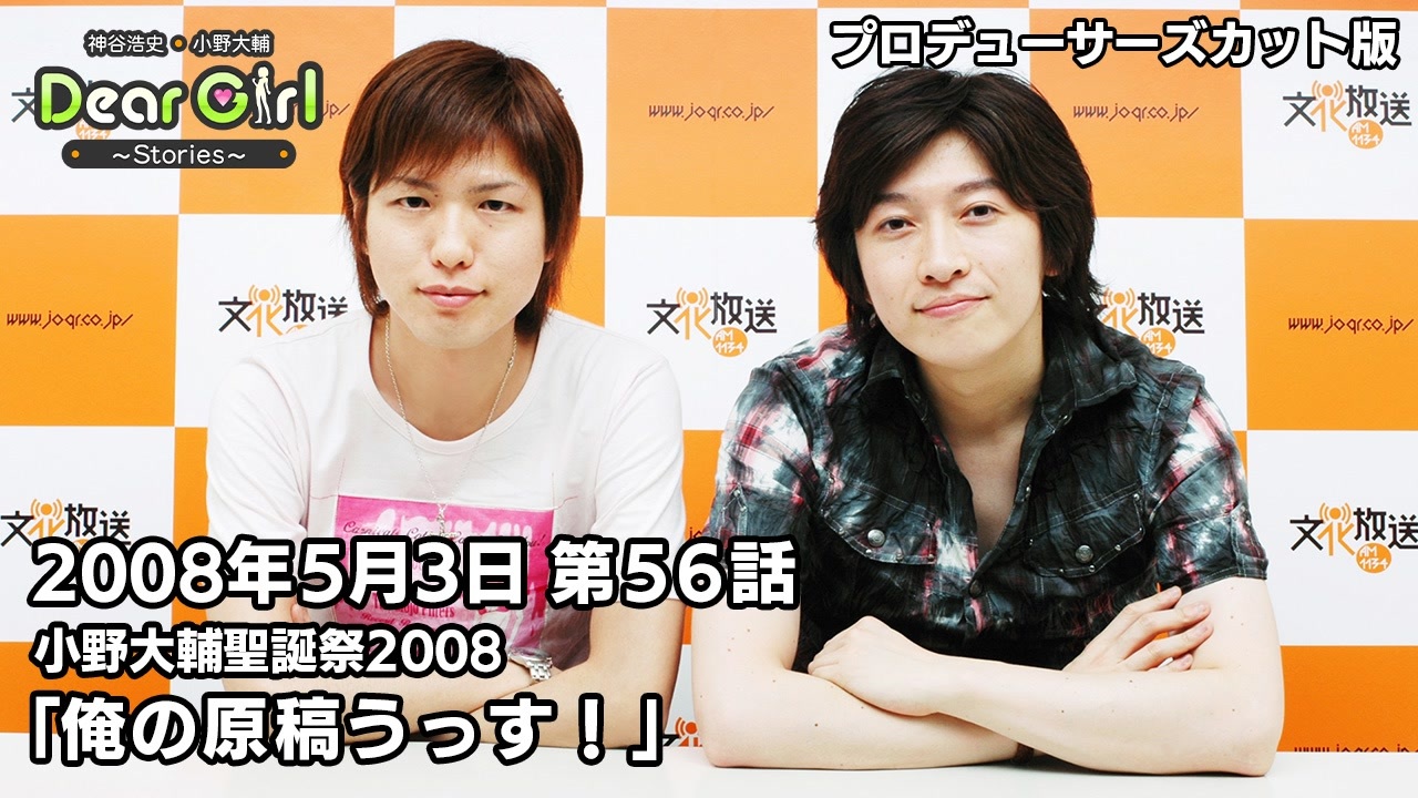 『神谷浩史・小野大輔のDear Girl〜Stories〜』<br>「第56話 俺の原稿うっす!(2008年5月3日放送)」プロデューサーズカットバージョン<br><br>こちらでは、文化放送で放送中のラジオ番組『神谷浩史・小野大輔のDear Girl〜Stories〜』の<br>過去音源を再編集したものをDGSチャンネル会員向けに配信!<br><br>今回は第56回放送のプロデューサーズカットバージョンをお届けします。<br><br><br>『神谷浩史・小野大輔のDear Girl〜Stories〜』<br><br>文化放送 毎週(土)25時〜25時30分<br>ラジオ大阪 毎週(日)23時〜23時30分<br>インターネットサイマルラジオradikoでも聴取可能です。<br><br>・公式Twitter:<a href="https://twitter.com/uchi_P_" target="_blank" rel="noopener nofollow">https://twitter.com/uchi_P_</a><br>・番組メールアドレス:dgs@joqr.net<br>・番組公式サイト:<a href="https://pc.animelo.jp/special/deargirl-stories/" target="_blank" rel="noopener nofollow">https://pc.animelo.jp/special/deargirl-stories/</a><br>