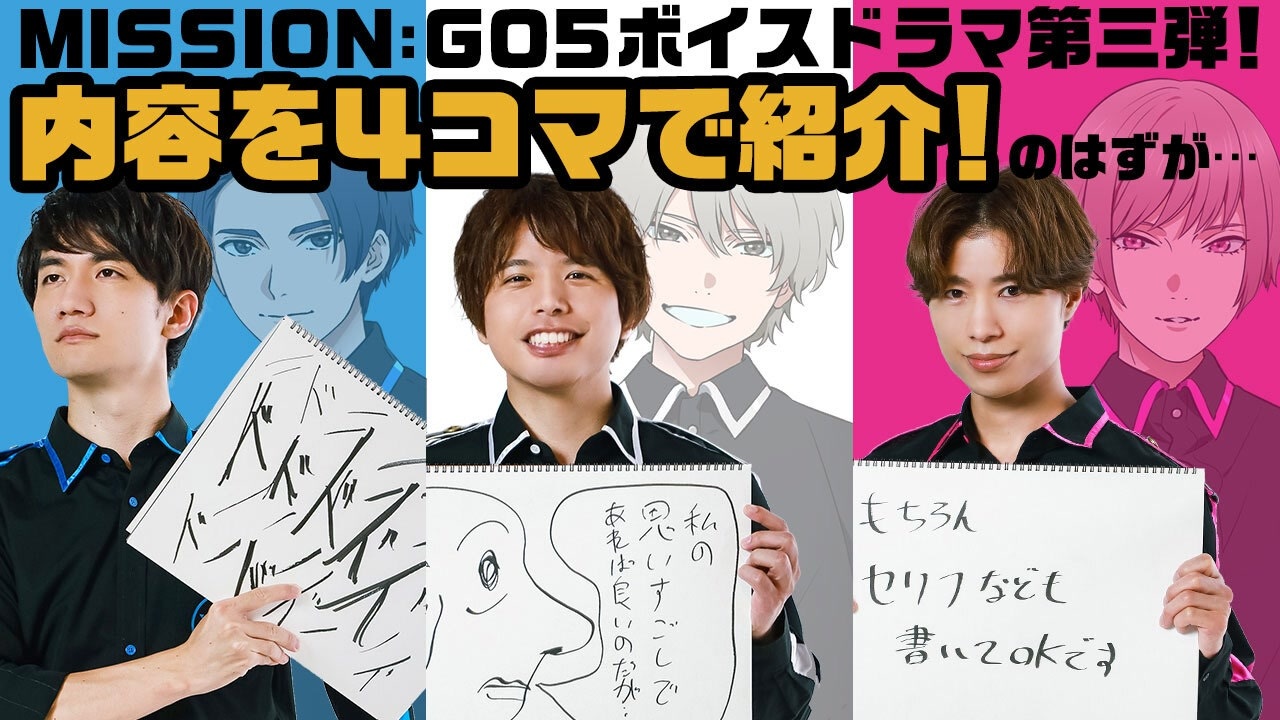 【GOALOUS5 ニコニコ動画支部】<br>手描き4コマでボイスドラマ第3弾の魅力を語る!(GO5チャンネル 第160回)<br><br><strong>★2022年7月3日(日)「声福大作戦~LIVE & READING~」開催決定!</strong><br><a href="https://www.goalous5.com/" target="_blank" rel="noopener nofollow">https://www.goalous5.com/</a><br><br><strong>★テーマソングCD第3弾「MIRAGE SHOW」発売中!</strong><br>①販売店情報<br><GCRESTORE(ジークレストア)><br><a href="https://gcrest.store/collections/goalous5" target="_blank" rel="noopener nofollow">https://gcrest.store/collections/goalous5</a><br><アニメイト(通販含む全店舗)><br><a href="https://www.animate-onlineshop.jp/animetitle/?aid=14736" target="_blank" rel="noopener nofollow">https://www.animate-onlineshop.jp/animetitle/?aid=14736</a><br>※店舗別購入特典もあります<br><br>②収録内容<br>【MV盤(CD +DVD)】<br><収録曲><br>M01:MIRAGE SHOW<br>M02:Dreaming Time<br>M03:MIRAGE SHOW(Instrumental)<br>M04:Dreaming Time(Instrumental)<br><DVD映像収録内容><br>01:MIRAGE SHOW Music Video<br>02:MIRAGE SHOW Music Videoメイキング映像(MV盤映像特典)<br>03:Trailer<br>GCGC-0011/¥2,200円(税込)<br><br>【M∞CARD A】<br><収録曲><br>M01:MIRAGE SHOW<br>M02:Dreaming Time<br>M03:MIRAGE SHOW(Instrumental)<br>M04:Dreaming Time(Instrumental)<br><収録映像><br>MIRAGE SHOW Music Video<br>GCGC-0012/¥1,870円(税込)<br><br>【M∞CARD B】<br><収録曲><br>M01:MIRAGE SHOW<br>M02:Dreaming Time<br>M03:MIRAGE SHOW(Instrumental)<br>GCGC-0013/¥1,320円(税込)<br><br>③購入特典<br><MV盤、M∞CARD共通><br>MVにも登場する予告状デザインを使用した<br>「予告状風ボイスカード」が1種(ランダム、全5種)付属。<br>ボイスカード収録内容の詳細は後日発表!<br>※MV盤、M∞CARDともに音声の収録されたカードが付属します。<br><br>④店舗別購入特典<br><MV盤、M∞CARD共通><br>GCRESTORE(ジークレストア):2L判ブロマイド<br>アニメイトオンライン:L判ブロマイド<br><br><strong>★「声福大作戦〜2019&2020〜」Blu-ray&DVD 発売中!</strong><br>①販売店情報<br><GCRESTORE(ジークレストア)><br><a href="https://gcrest.store/collections/goalous5" target="_blank" rel="noopener nofollow">https://gcrest.store/collections/goalous5</a><br><アニメイト(通販含む全店舗)><br><a href="https://www.animate-onlineshop.jp/animetitle/?aid=14736" target="_blank" rel="noopener nofollow">https://www.animate-onlineshop.jp/animetitle/?aid=14736</a><br>※店舗別購入特典もあります<br><br>②収録内容<br>【Blu-ray&DVD共通】<br>▼本編映像<br>・「声福大作戦〜集結!GOALOUS5!〜」(2019年オフラインイベント)<br>・「声福大作戦〜新作戦!虜にさせるのだ!〜」(2020年オンラインイベント)<br><br>▼映像特典<br>・「声福大作戦〜集結!GOALOUS5!〜」悪の朗読(夜の部)<br><br>【Blu-ray限定音声特典】<br>「声福大作戦〜集結!GOALOUS5!〜」オーディオコメンタリー <br><br>【Blu-ray】GCGB-0001/¥13,200円(税込)<br> 【DVD】GCGD-0001/¥10,780円(税込)<br><br>③店舗別購入特典<br><Blu-ray、DVD共通><br>GCRESTORE(ジークレストア):ポストカード<br>アニメイトオンライン:ポストカード<br><br>★悪の相談募集中<br>下記のフォームに記入、投稿をお願いいたします。<br><a href="http://bit.ly/2Q3wMUh" target="_blank" rel="noopener nofollow">http://bit.ly/2Q3wMUh</a><br><br>★GOALOUS5(ゴーラスファイブ)とは<br>世界声福(征服)を目論む悪の組織が、先遣隊として声を生業にする熊谷健太郎、小松昌平、寺島惇太、仲村宗悟、深町寿成を派遣した。それが「GOALOUS5(ゴーラスファイブ)」だ。5人は声を武器に人々を虜にし、世界を声福(征服)していくための活動を行っていく。<br><br>★GOALOUS5の虜になった者は、公式Twitterのフォローを。<br><br>★GOALOUS5公式Twitter<br>@sir_goalous( <a href="https://twitter.com/sir_goalous" target="_blank" rel="noopener nofollow">https://twitter.com/sir_goalous</a> )<br><br>運営:株式会社ジークレスト<br><a href="https://www.gcrest.com/" target="_blank" rel="noopener nofollow">https://www.gcrest.com/</a>